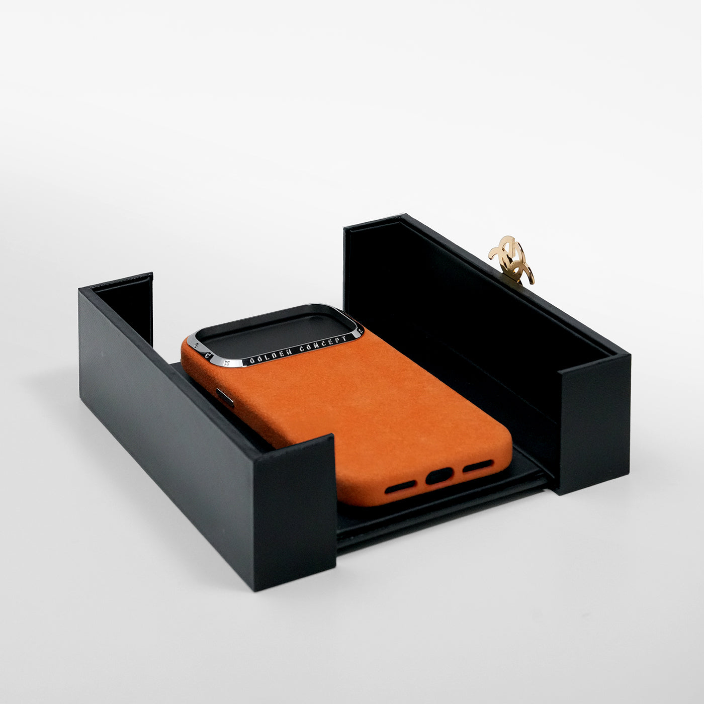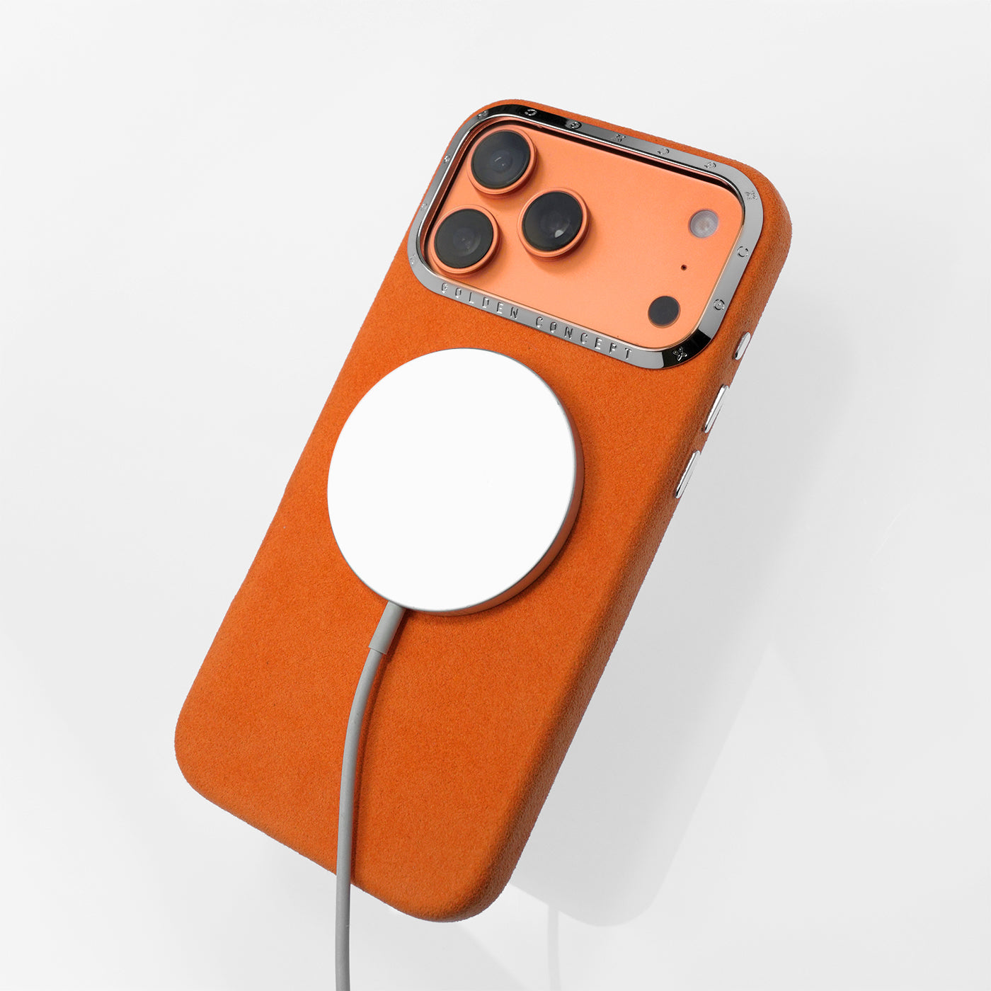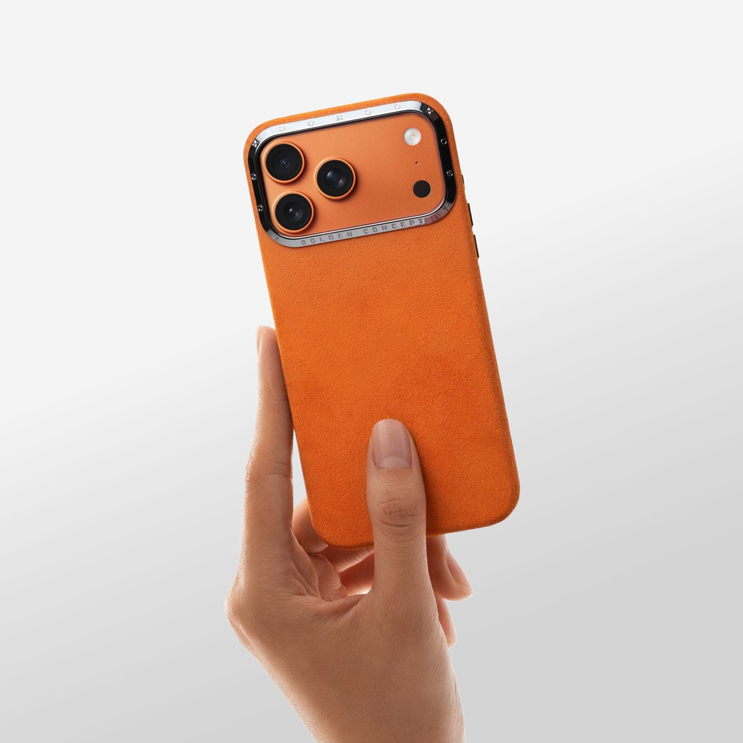 iPhone 17 Pro / Pro Max のために設計された Alcantara® iPhone ケースは、デバイスの使い心地そのものを再定義します。鮮やかなオレンジの Alcantara® が、確かなグリップ感と軽快でエネルギッシュな印象をもたらし、磨き上げられたメタルアクセントが全体を引き締めます。素材のコントラストによって形作られたその佇まいは、精密で、揺るぎない自信を感じさせる仕上がりです。