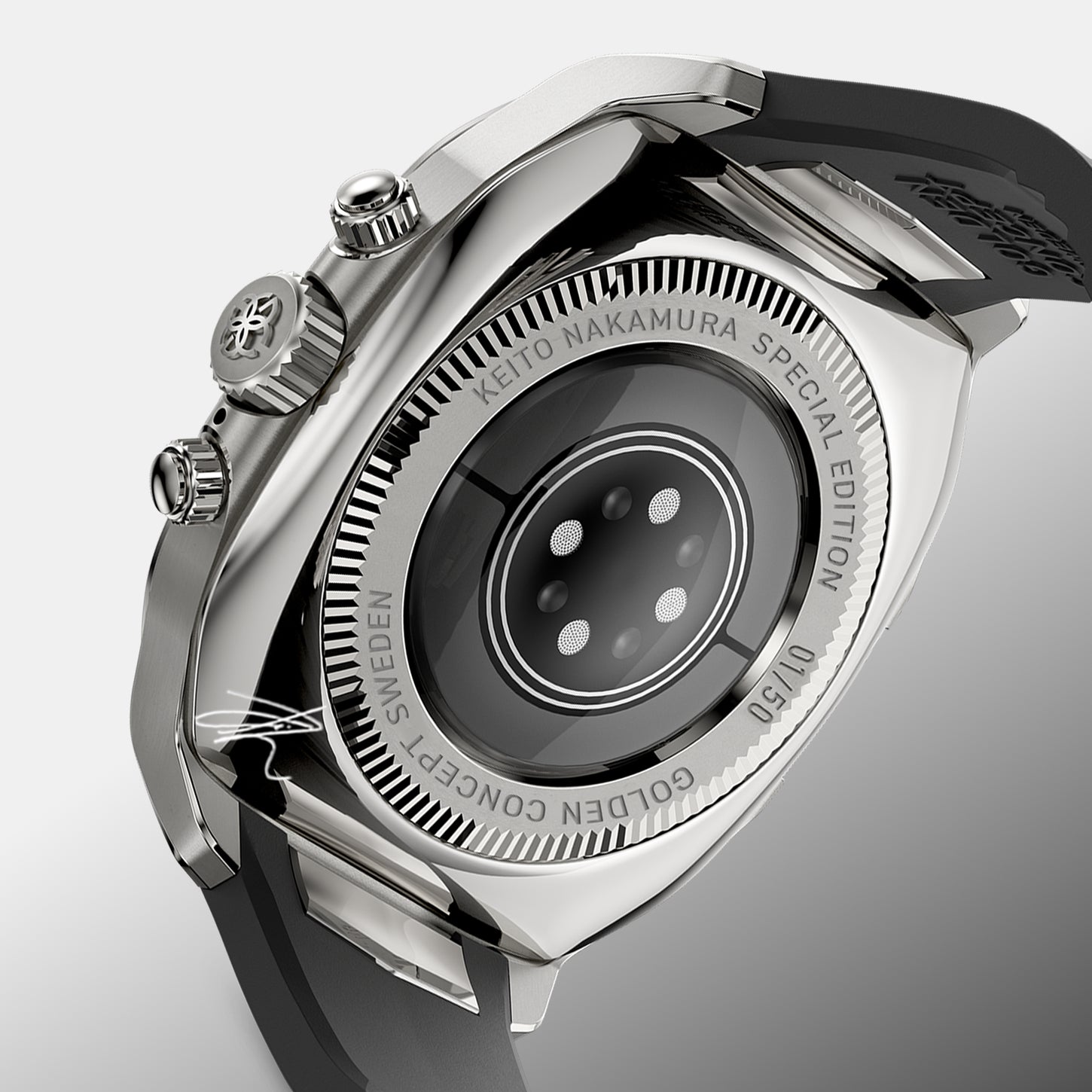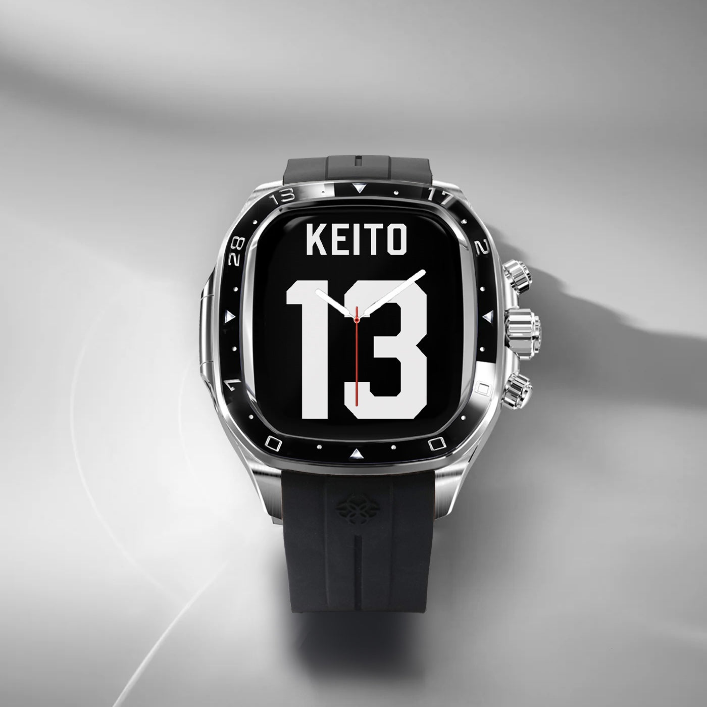 「CRS46 - Keito Limited」のベゼルは、「中村 敬斗」選手の誕生日や背番号にちなみ「2,0,0,0,7,28,13,17」の数字が刻まれた特別仕様。同氏の歩みや個性を映し出す意匠が随所に織り込まれ、静かに存在感を放つ一品に仕上がっています。