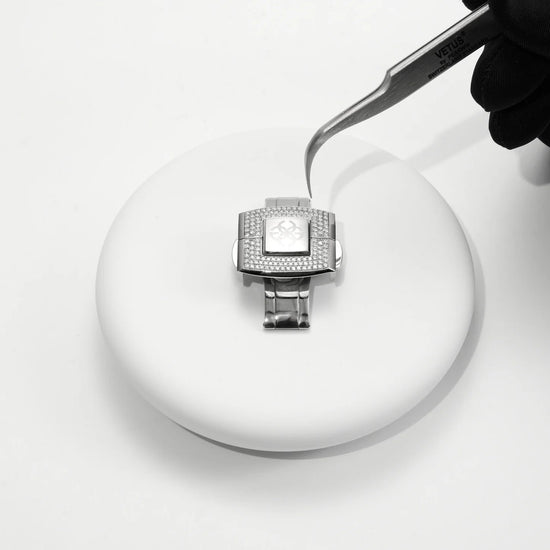 1,068個のダイヤモンドが輝くこのウォッチケースは、装着するだけで周囲の視線を集めます。光の角度で異なる表情を見せるダイヤモンドが、どの角度から見ても圧倒的な存在感を放ち、あなたの手首に贅沢な輝きを与えます。高級感あふれるデザインが、あなたのスタイルをさらに洗練させます。