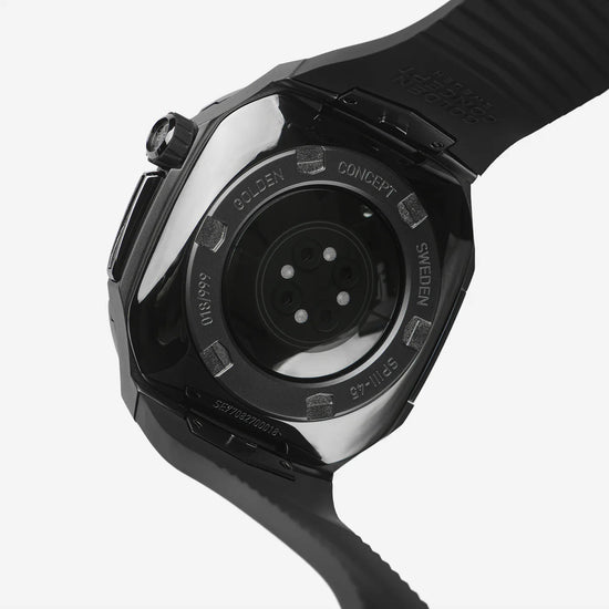 今回のコラボモデルで初めて採用された『ガンメタル』ケースが特徴で、ブラックのラバーストラップと組み合わせることで、洗練されたデザインが力強さとエレガンスを表現しています。