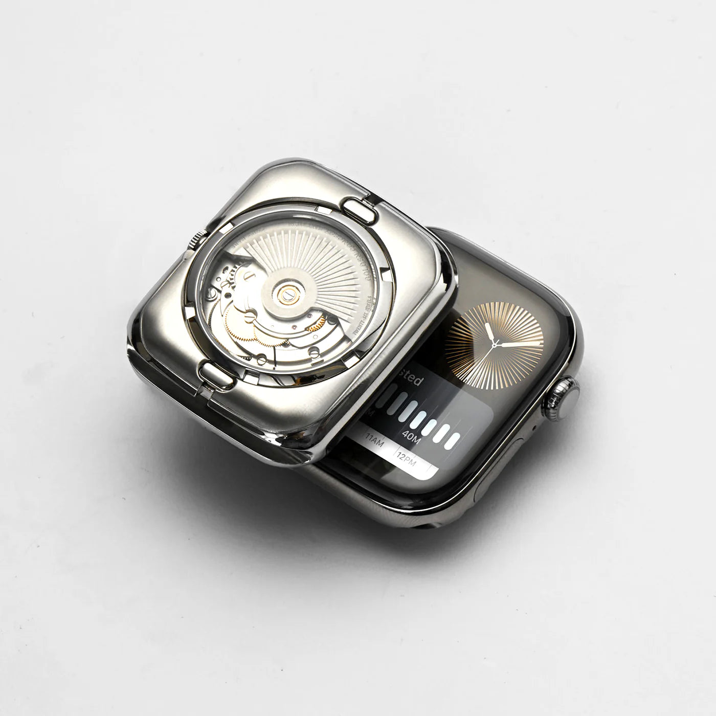Apple Watch 45mmと同じ寸法で設計されたこの自動巻き時計は、ウォッチケースにシームレスに収まります。日常使いのApple Watchから特別な場面にふさわしい大胆な機械式時計への切り替えもスムーズで、快適さやスタイルを損なうことはありません。エレガントなデザインで、二つの魅力を兼ね備えています。
