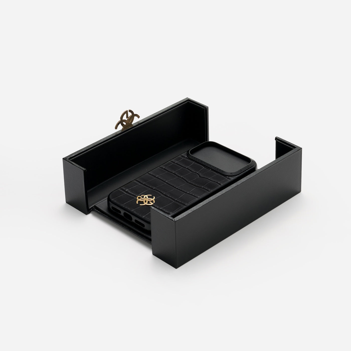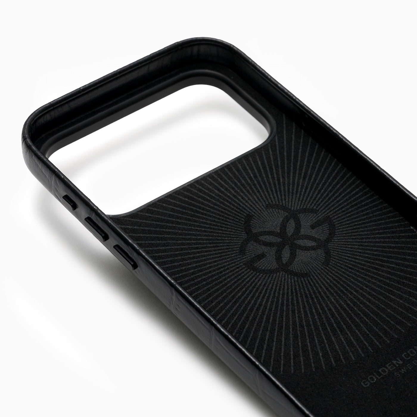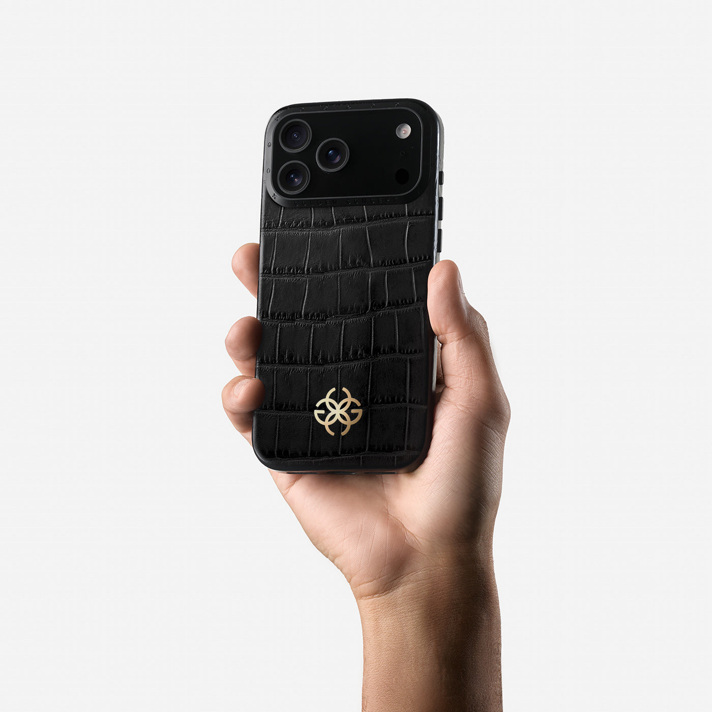 iPhone 17 Pro、Pro Max、Air のために仕立てられた本ケースは、精緻なクロコダイル模様を型押ししたイタリアンレザーで包み込まれています。その質感は大胆さと洗練を兼ね備え、iPhone のクリーンなフォルムを個性あふれる存在へと昇華させます。