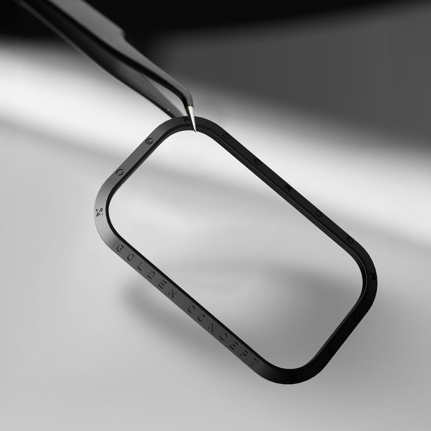 精密加工されたアルミニウム製フレームがカメラを囲み、GCモノグラムの刻印が施されています。ベース部分には、316Lステンレススチール製のGCエンブレムを18KゴールドでPVDコーティングし、バランスを考慮した緩やかなカーブを採用。深みのあるレザー表面に、温かみのあるアクセントを添え、上品なコントラストを描き出します。