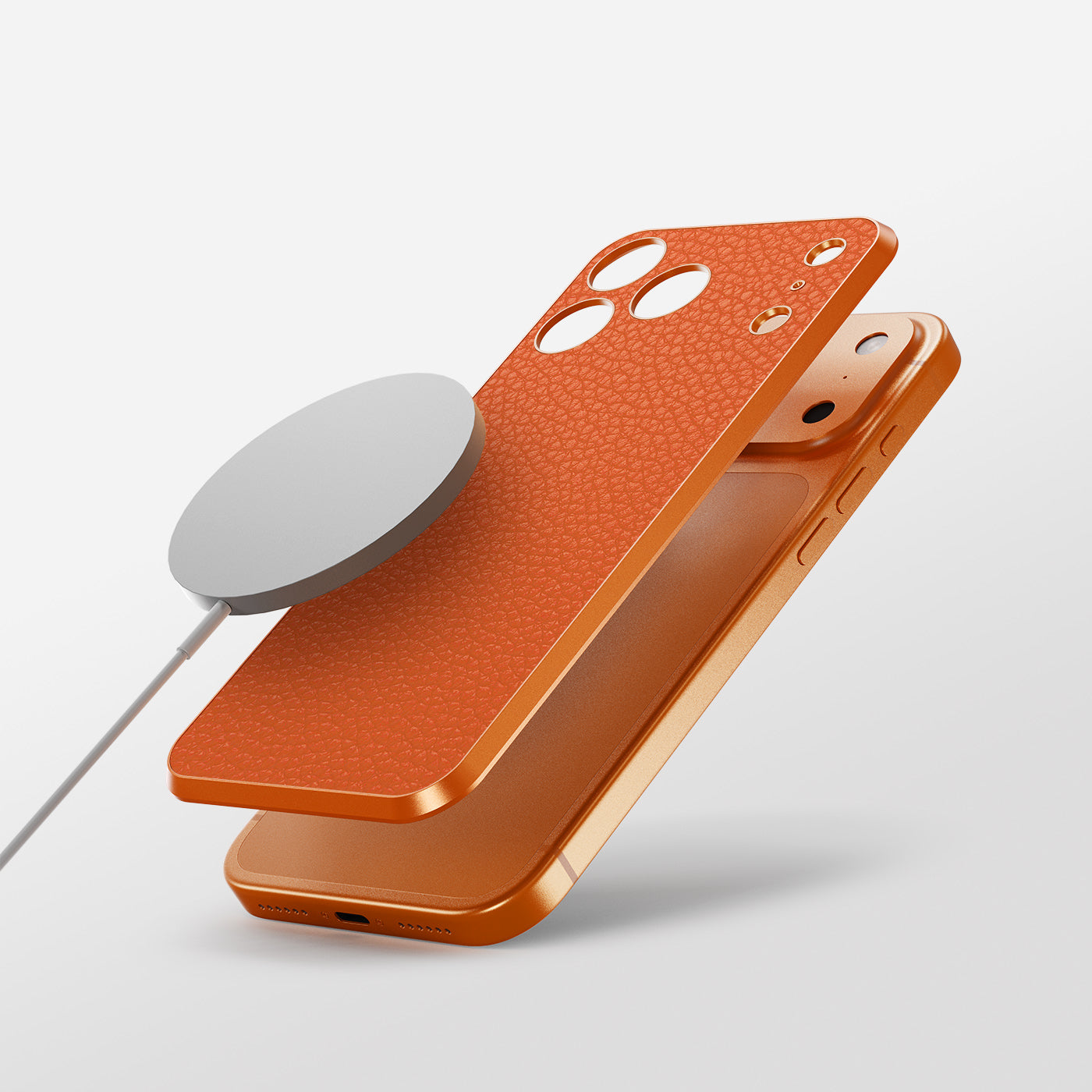 カラーは、Appleの最新iPhone Pro「コズミックオレンジ」に合わせて精密に調整され、デバイスとの美しい一体感を生み出しています。滑らかな手触りと豊かな風合いを併せ持つレザーが、奥行きのある表情と上質な質感を添えながら、iPhone本来のスリムなフォルムをそのままに引き立てます。