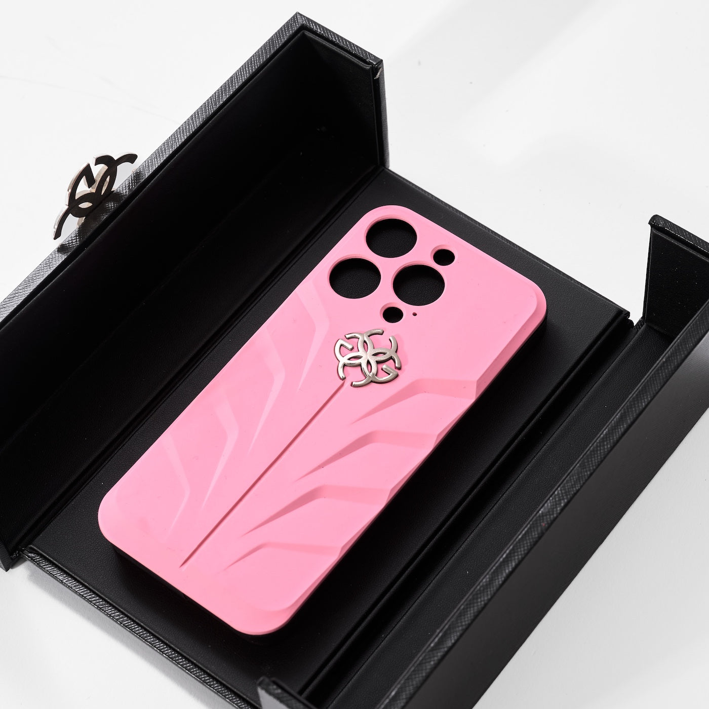 ケース中央には、精密でエレガントに作られたゴールデンコンセプトのシンボルロゴがあしらわれています。この繊細でありながら印象的なディテールが、ケースのダイナミックなデザインを引き立て、ブランドの品質と卓越した職人技へのこだわりを見事に表現しています。