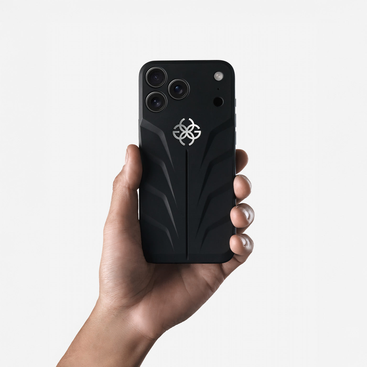 「レーシングスポーツ マグネティックシールド」は、チタニウムグレーのステンレススチール製ゴールデンコンセプトのエンブレムで仕上げられ、控えめながらも存在感のあるディテールを添えています。精密に設けられたカットアウトが、iPhone のカメラやマイク、フラッシュに正確に対応し、機能性とシームレスなデザインを両立しています。