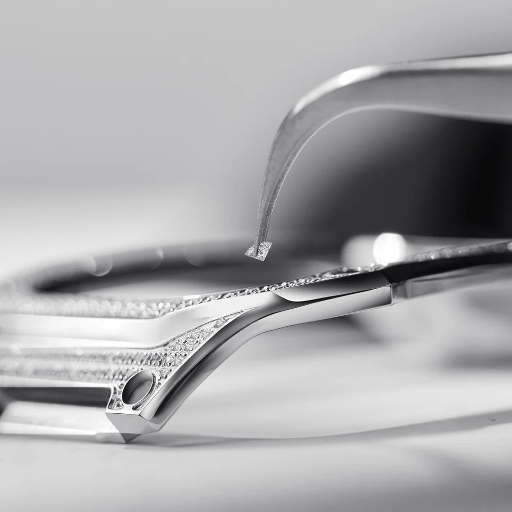 そしてApple Watchケース『RACING SPORT ULTRA』には、プラチナケースに計6.98カラット、677個のダイヤモンドを採用。複雑な石留めには約40時間が費やされ、Apple Watchウルトラ特有のパワフルさにダイヤモンドの上品な煌めきを落とし込んだ作品に仕上がっています。