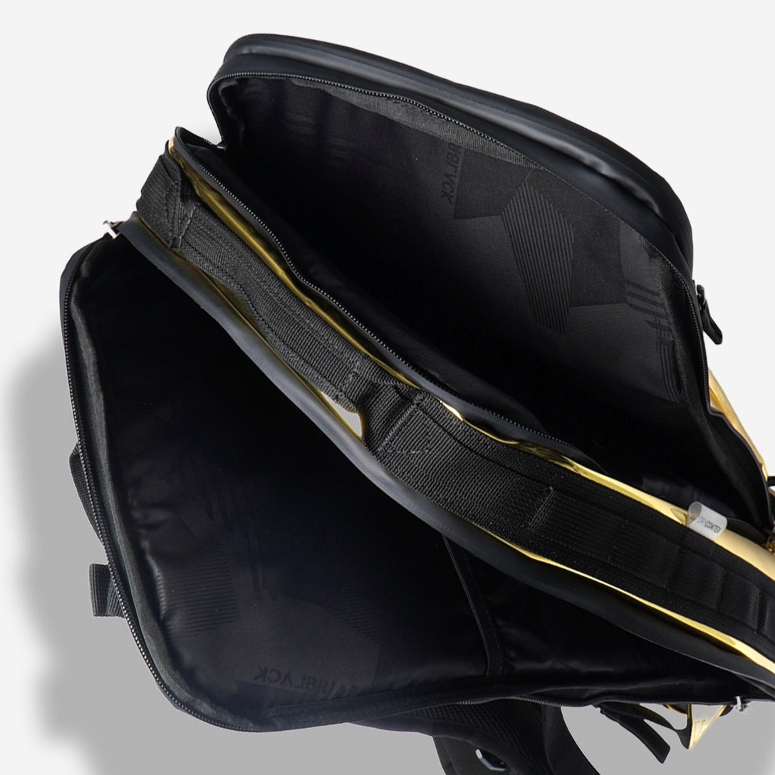 機能性とタフさ、洗練されたラグジュアリー感が融合。鮮やかに輝くゴールドのボディにブラックのディテールを施し、都会的で大胆なデザインを際立たせたバッグ。シティユースからアウトドアまで、多目的に使える大容量で、どんなシーンにも対応します。