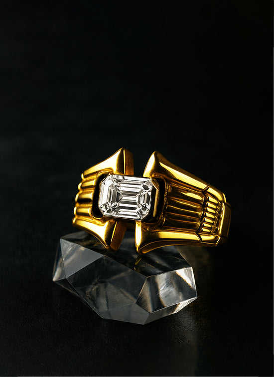 エメラルドカットの 1 ct ラボグロウンダイヤモンドを使用したリングコレクション「LGD - Ring K10 Gold」が登場。直線的な形状と高さのある石座が特徴で、ダイヤモンドの輪郭がしっかり見えるデザインです。装飾を多く入れず、石とゴールドの質感をそのまま楽しめる仕上がりになっています。