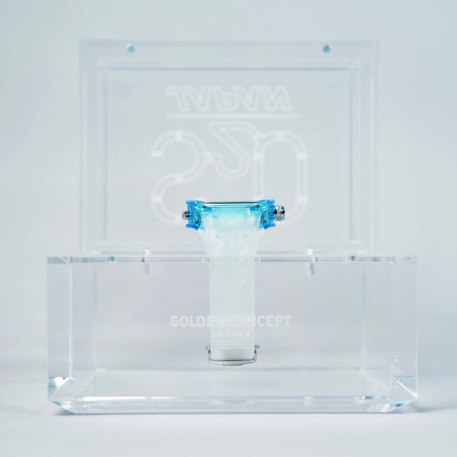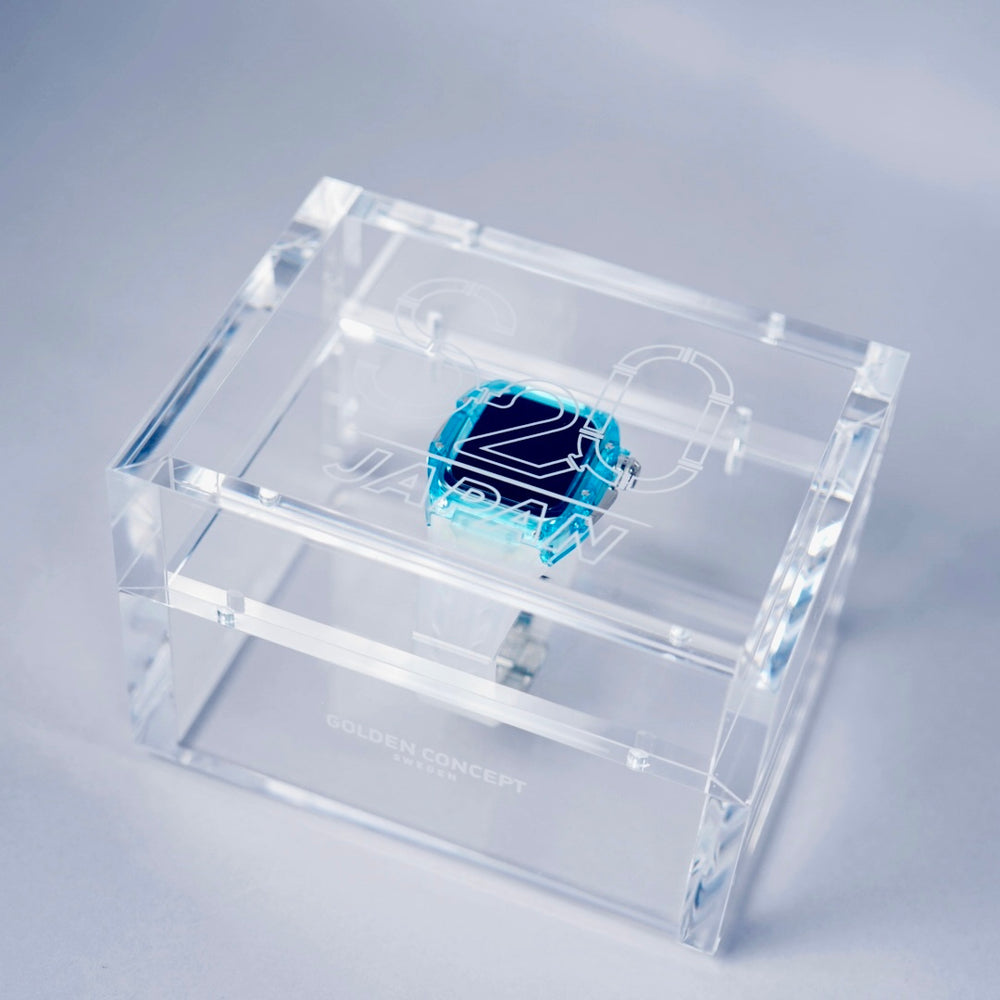 今回コラボレーションモデルのためにデザインされた特別仕様のBOXに収められます。透明で洗練されたクリアBOXが製品の魅力を最大限に引き出します。