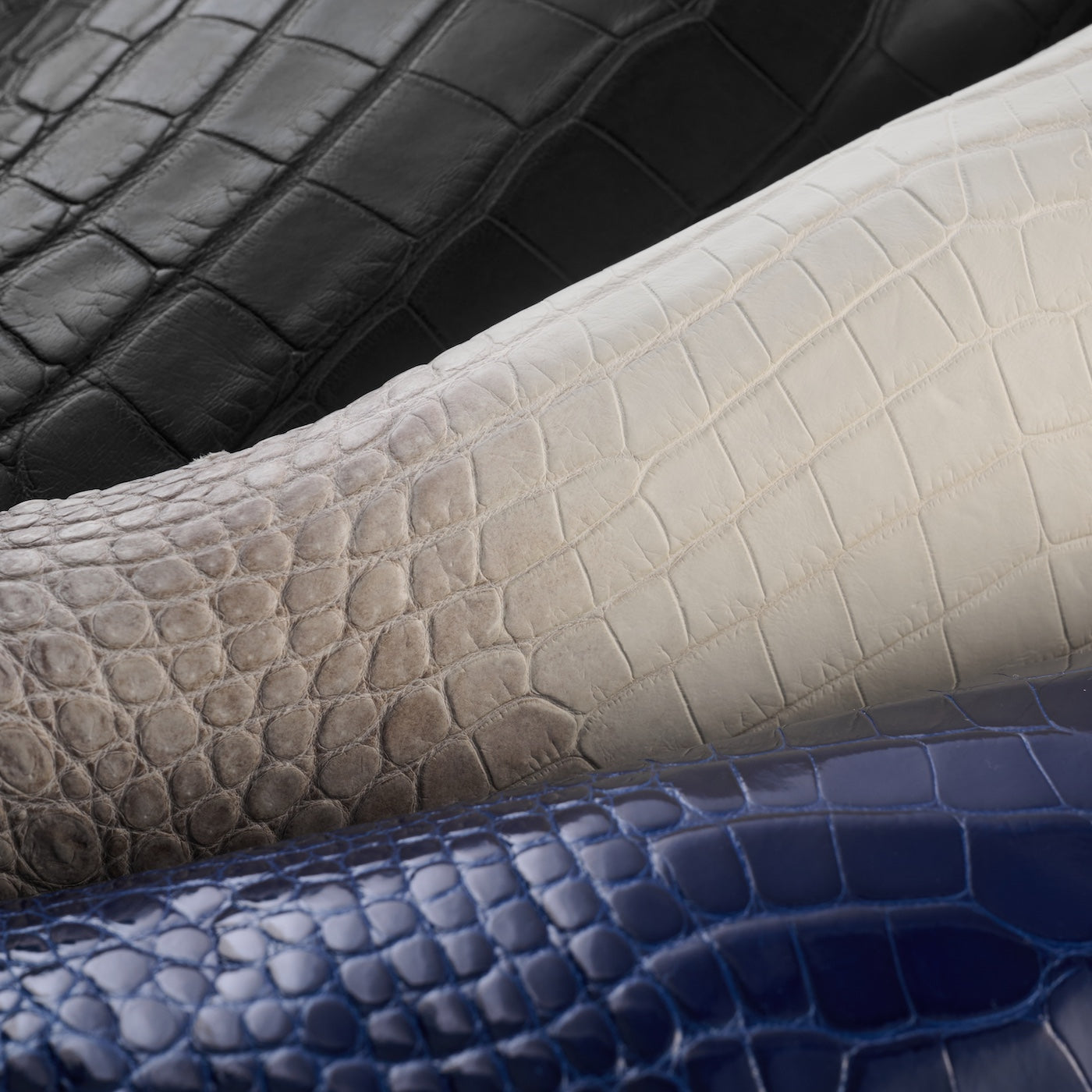 ミシシッピ産アリゲーターとヒマラヤン・ナイルクロコダイルの天然レザーを100%使用。どちらも、豊かな表情、希少性、そして上質な風合いを持つものだけを厳選しています。世界でも屈指の高級レザーとして知られ、革製品の最高峰に位置づけられる素材です。