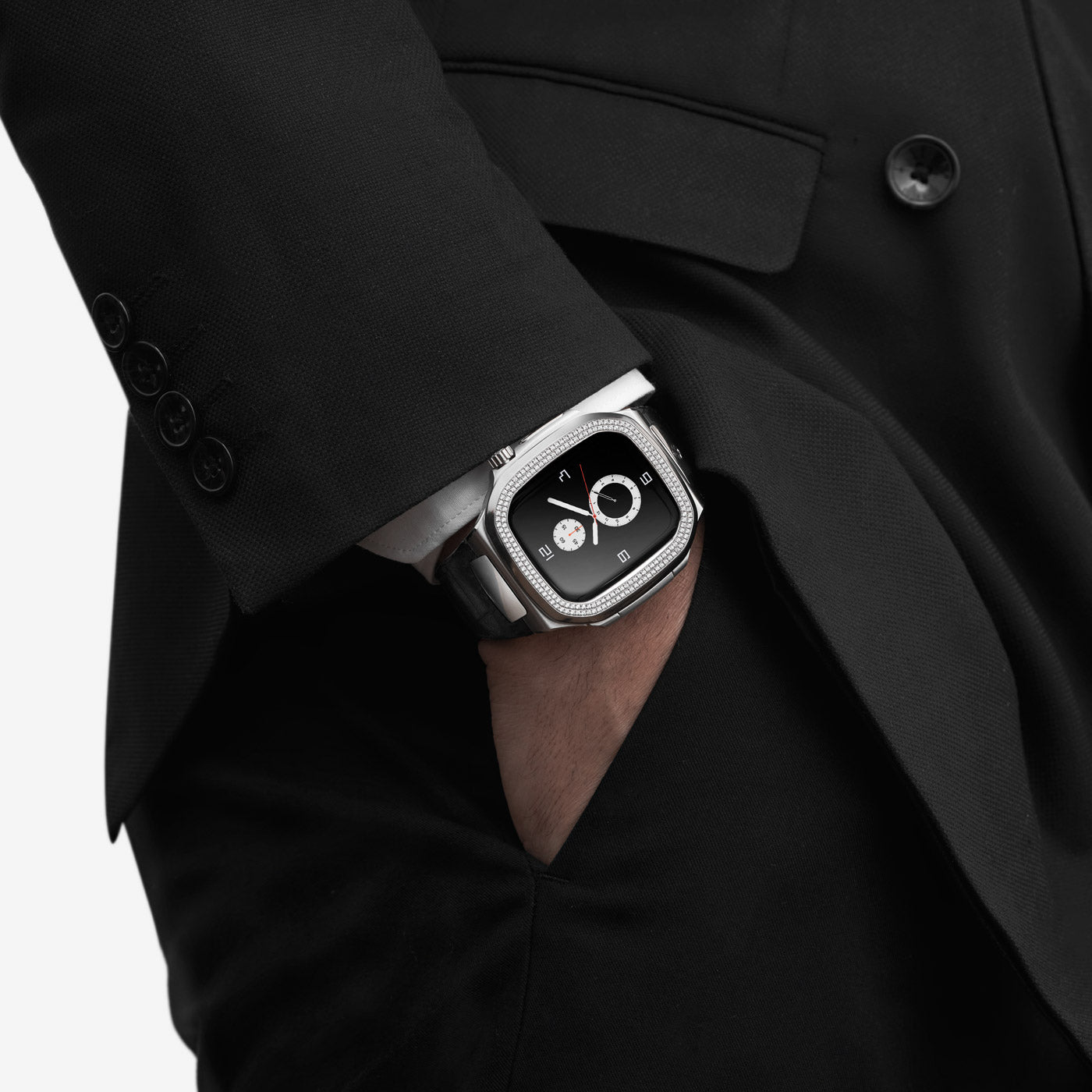ボタンを押すだけで装着可能。ロイヤルエデションの特許技術である革新的なHatch-Bezel®システムは、Apple Watchの簡単な取り付けと取り外しを提供します。