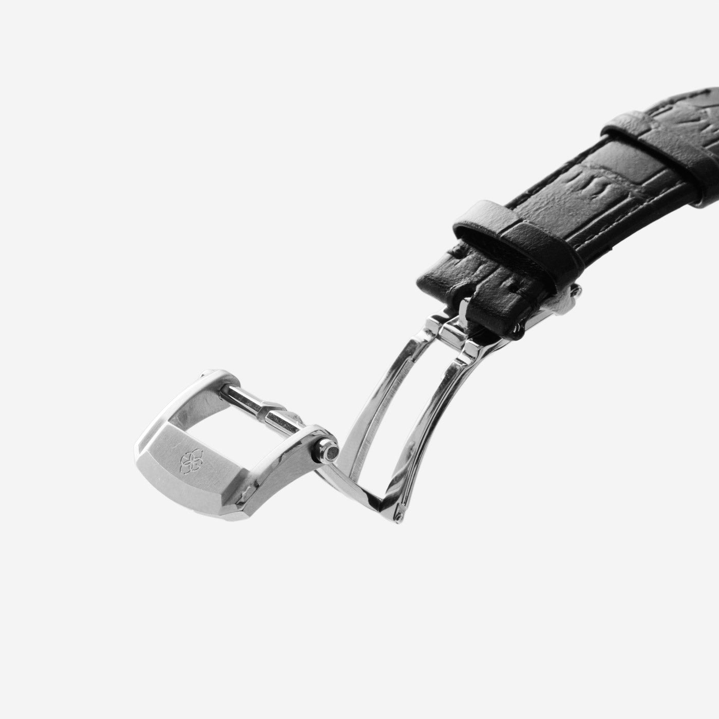 クロコエンボスレザーストラップは、独特で美しい模様により、時代を超越した高級感とエレガンスを与えます。また、表面は傷や摩耗に強く、長きにわたってその美しさを観に纏うことができます。