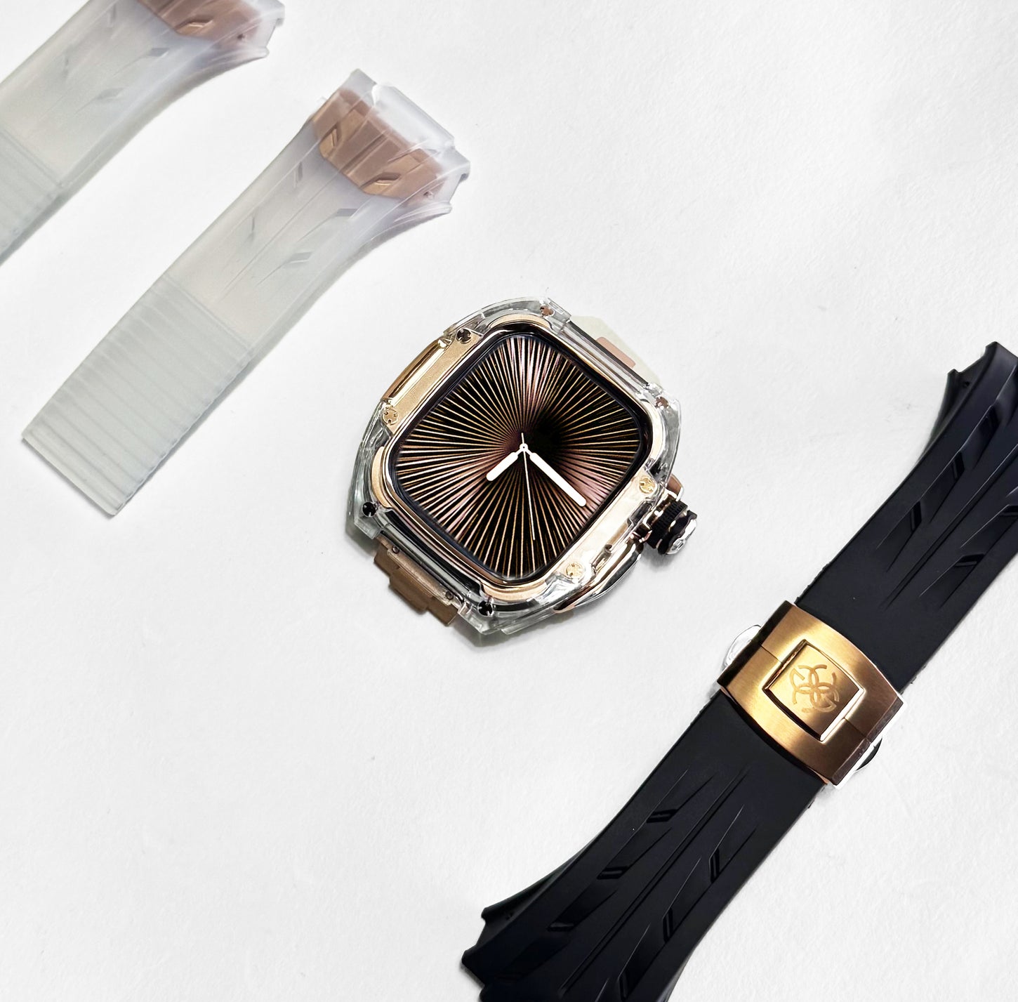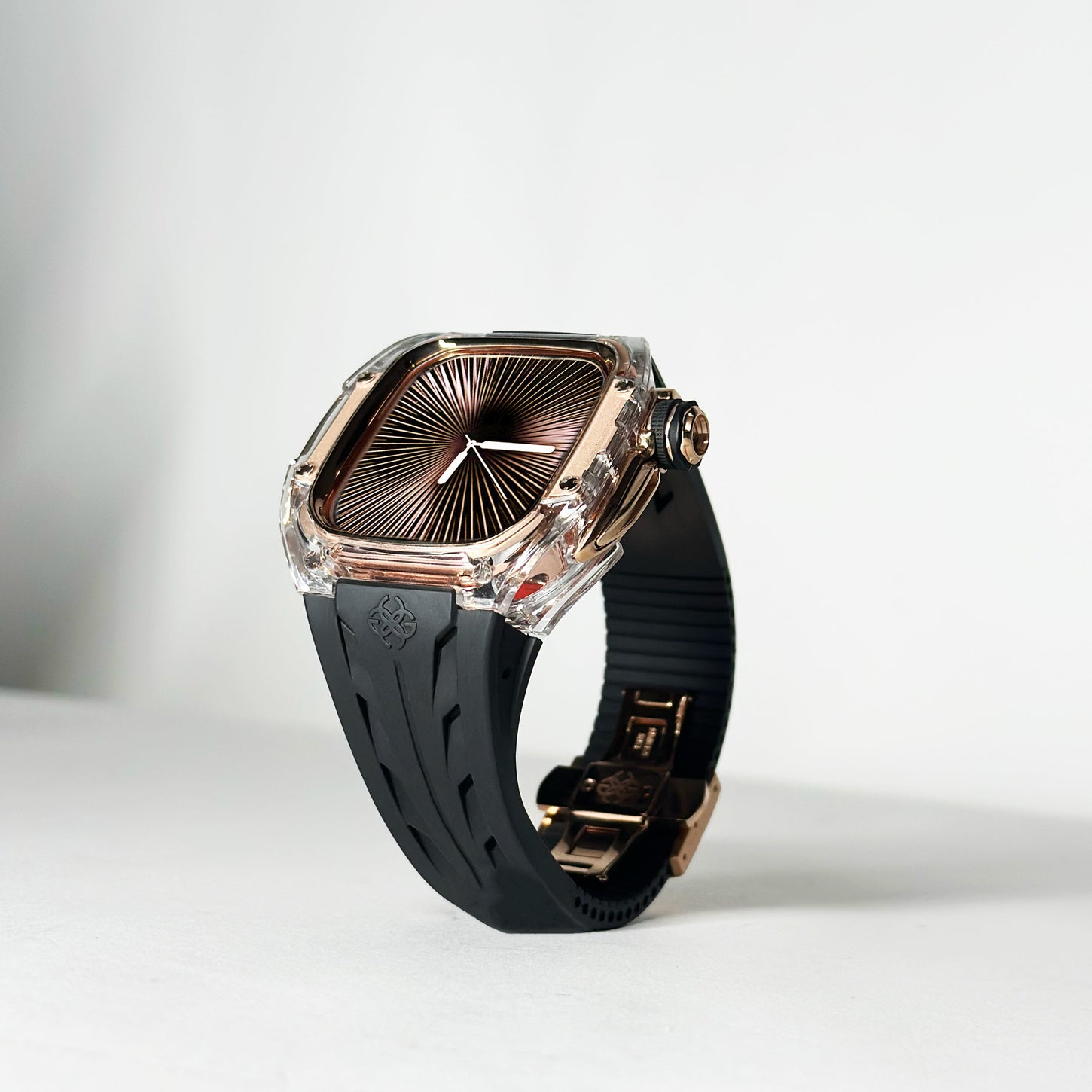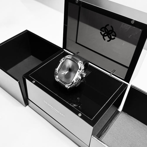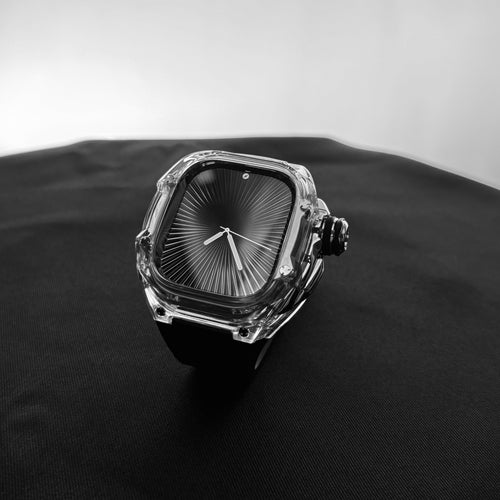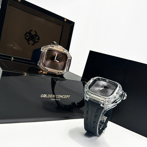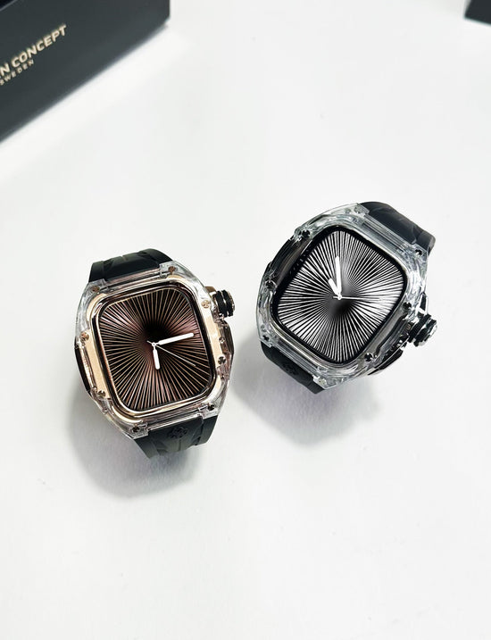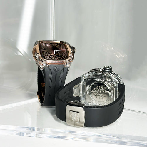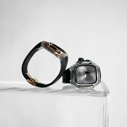透明感のあるクリアケースにブラックストラップを組み合わせ、モダンで引き締まった印象を演出します。Apple Watch Ultra 1・2・3(49mm)および Apple Watch Series 10・11(46mm)に対応し、クリアとブラックが織りなすコントラストが、GOLDEN CONCEPTらしい高級感あふれる美しさを際立たせます。