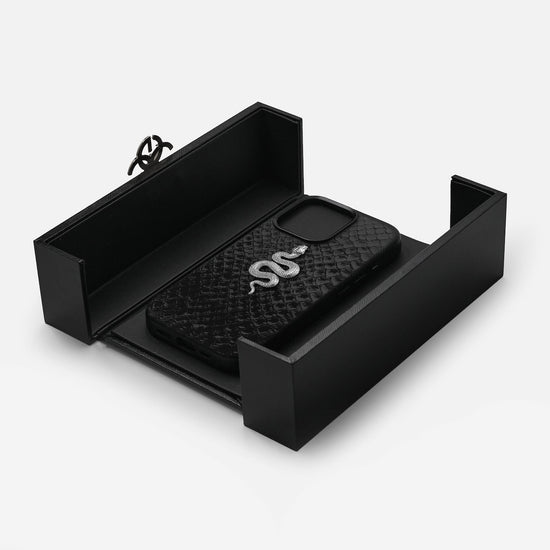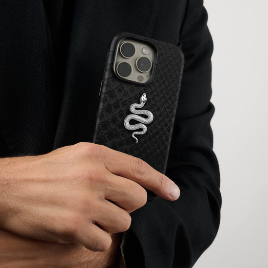 大胆でエレガントなスタイルを求める方のためにデザインされた「Black Python Edition iPhone Case」は、旧正月の象徴的な精神を体現した一品です。艶やかなブラックパイソンレザーと際立つ蛇の装飾が融合し、このケースは強さと洗練を象徴し、持つ人に自信と品格を与えます。
