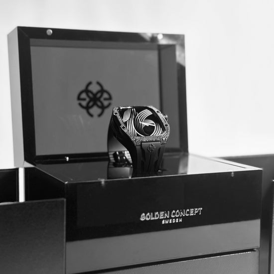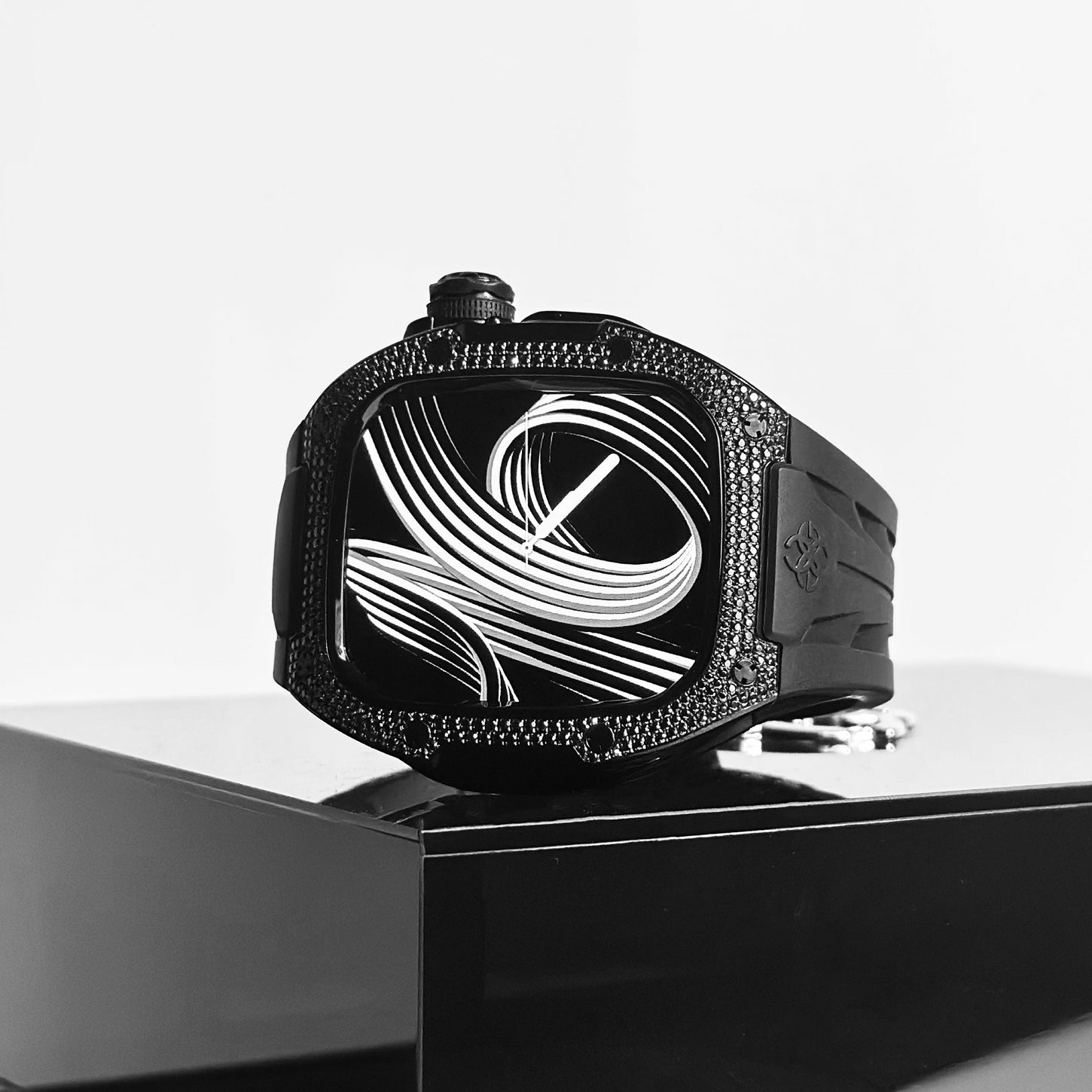 ケースからストラップまで全体をブラックで統一し、ベゼルにはブラックモアサナイトを丁寧にセットすることで、奥行きのあるブラックの世界観を構築しました。ブラックを徹底的に追求し、素材の質感と仕上げが静かに主張するVENOMは、これまでのブラックモデルとは一線を画す佇まいを備えた特別な一本に仕上がっています。