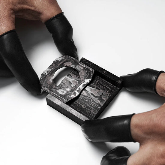 製品は、内装にブラックレザーを用いたハンドメイドのブラックオーク製ボックスに収められます。商品の魅力を最大限に引き出すために、開封構造にも工夫を凝らし、慎重にデザインしました。単なる包装物に留まらず、贅沢で魅力的な"開封体験"をお届けします。