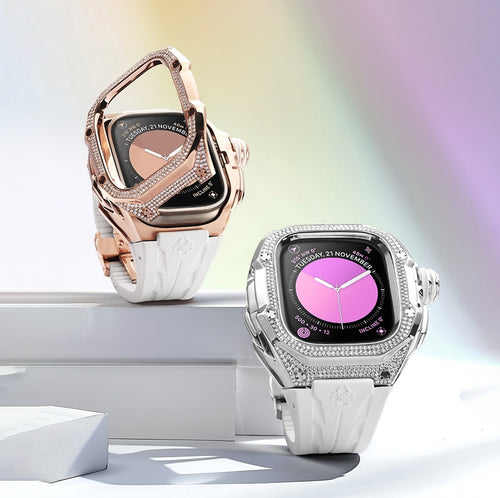 天然ダイアモンドの約2.5倍の輝度を誇る「モアサナイト」がベゼルにセッティングされたスペシャルエディションとなっています。インパクトのあるサイズ感でありながら、「SNOW FLAKE」はクリーンに、「AMBER ROSE」はより上品な印象となっています。