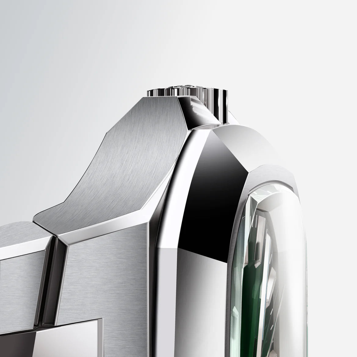 Royal Evening Royal Green は、深みと独自性によって形づくられた特別なトーンをもつモデルです。深いグリーンダイヤルは、手首の動きに合わせて表情を変えるニュアンスがゆるやかに浮かび上がり、過度にならずに豊かな存在感を与えます。なめらかなグラデーションがダイヤル全体の構成を美しくまとめ上げ、このモデルならではの揺るぎない個性を際立たせています。