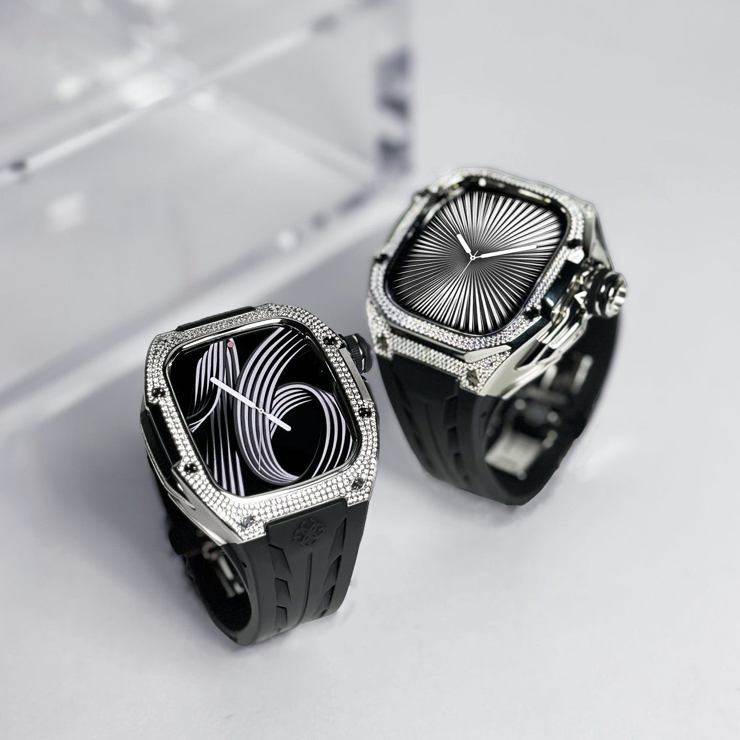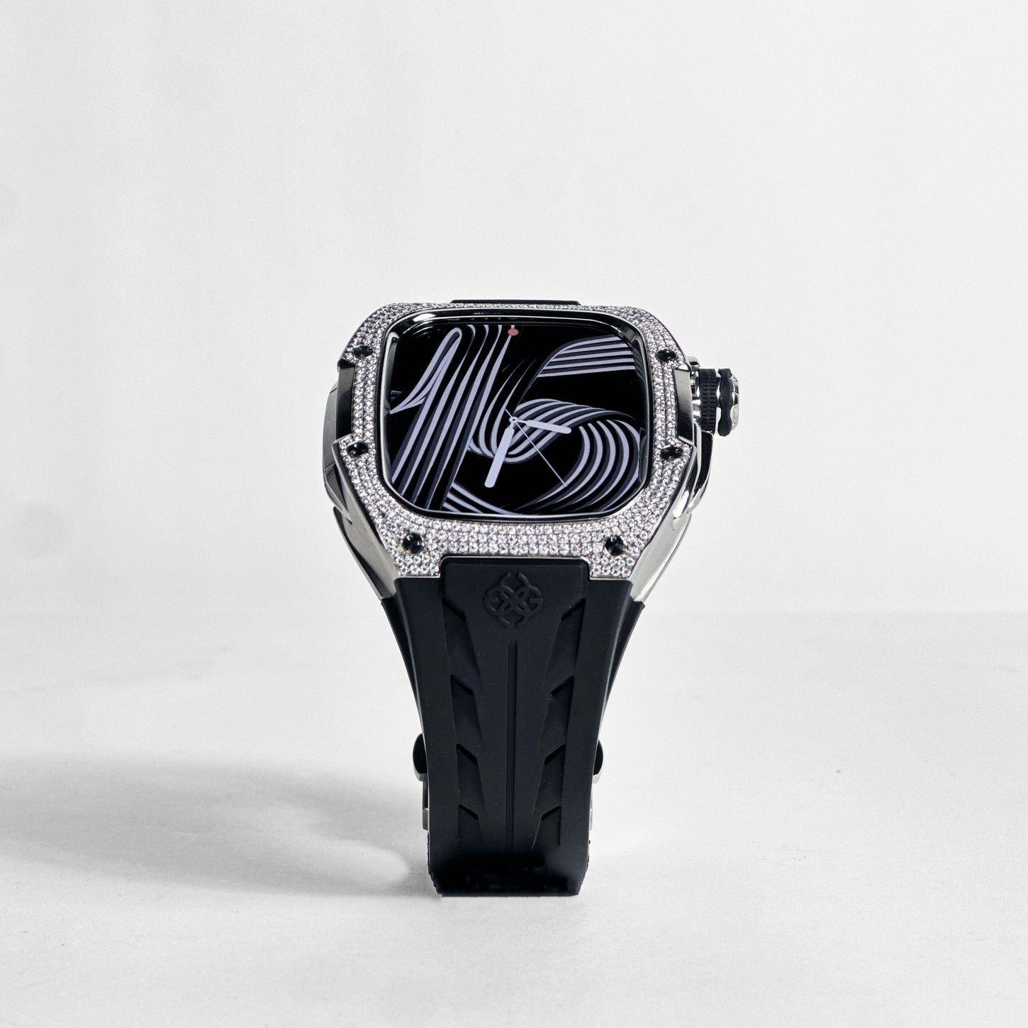 互換性アップルウォッチ10/11 - 46MM 素材ステンレススチール ベゼルモアサナイト ケースサイズ45,6 x 52,9 mm 防水APPLE WATCHの防水性に準ずるストラップラバーストラップ、展開式バックル重量56グラム (ケース重量/Apple Watch本体含まない)  付属品取り扱い説明書、専用ピン※ ラバー製の保護カバーの付属はございません。取り付けが不要です。ご注意           本製品はケース単体での販売となります。アップルウォッチ本体は付属しておりません。バックケースを取り付ける為、心拍数の計測など、ヘルスケアに関する機能がご利用いただけなくなります。