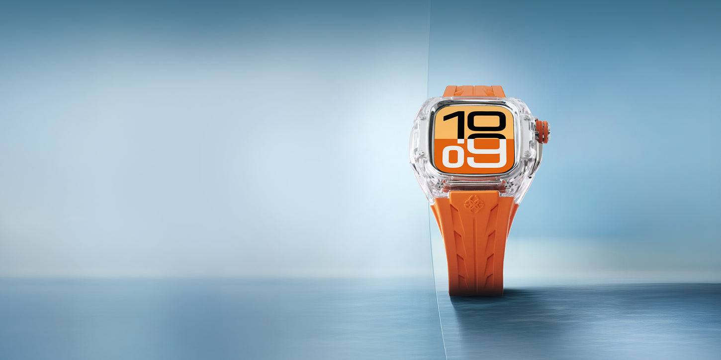 サンセットオレンジの鮮やかなカラーが、Racing Sport Transparent に力強いコントラストと新たなエネルギーをプラス。ブランドを象徴するデザインに、鮮烈なアップデートを加えました。