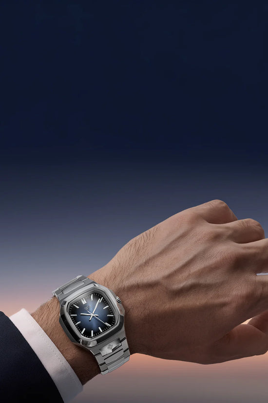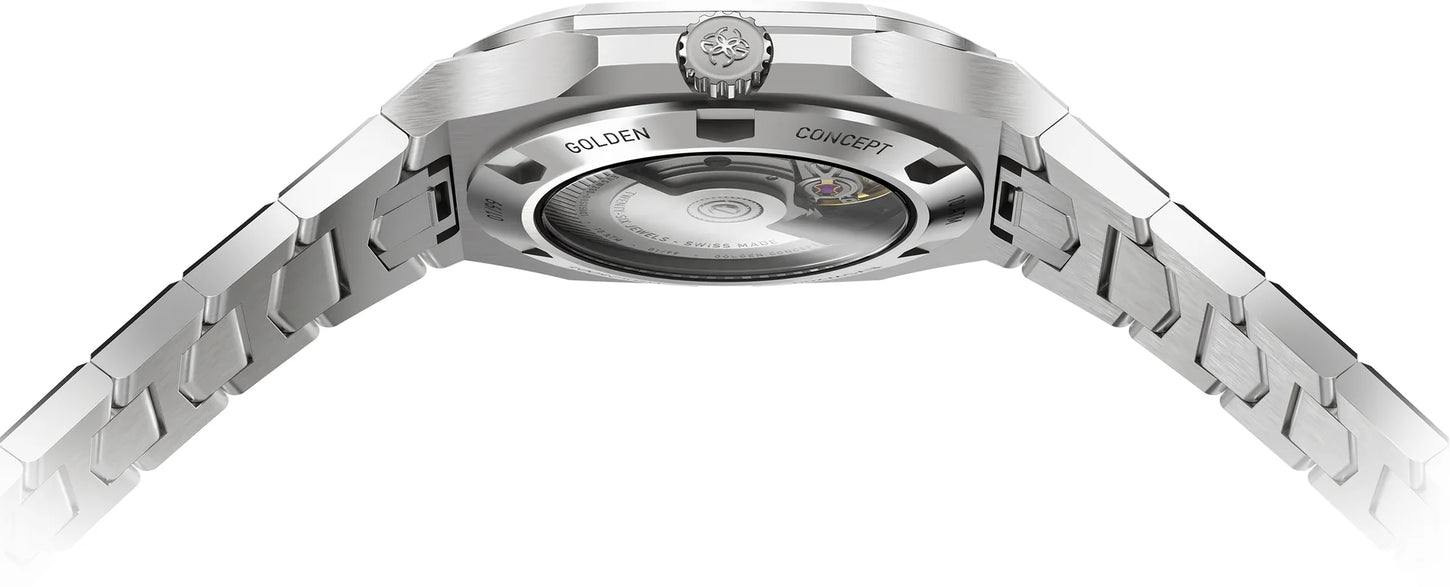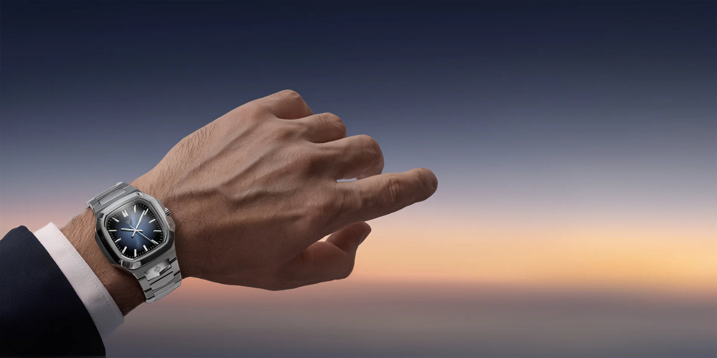 ゴールデンコンセプトの時計づくりは、Apple Watch の形を模した自動巻き時計から始まりました。単体のタイムピースとしての魅力を備えながら、私たちのケースを装着することでまったく新しい表情へと変化するテクノロジーと伝統的な機械式時計の精神をひとつに結びつけた、象徴的な存在でした。