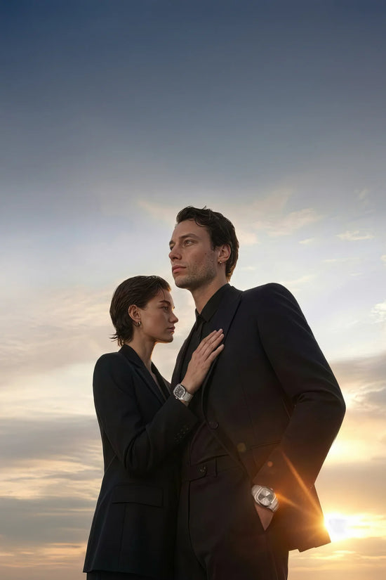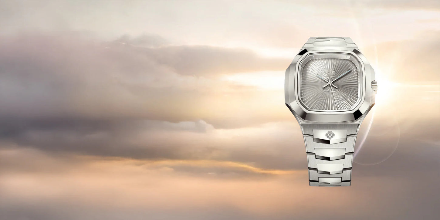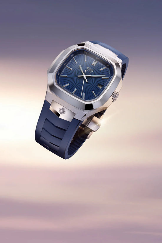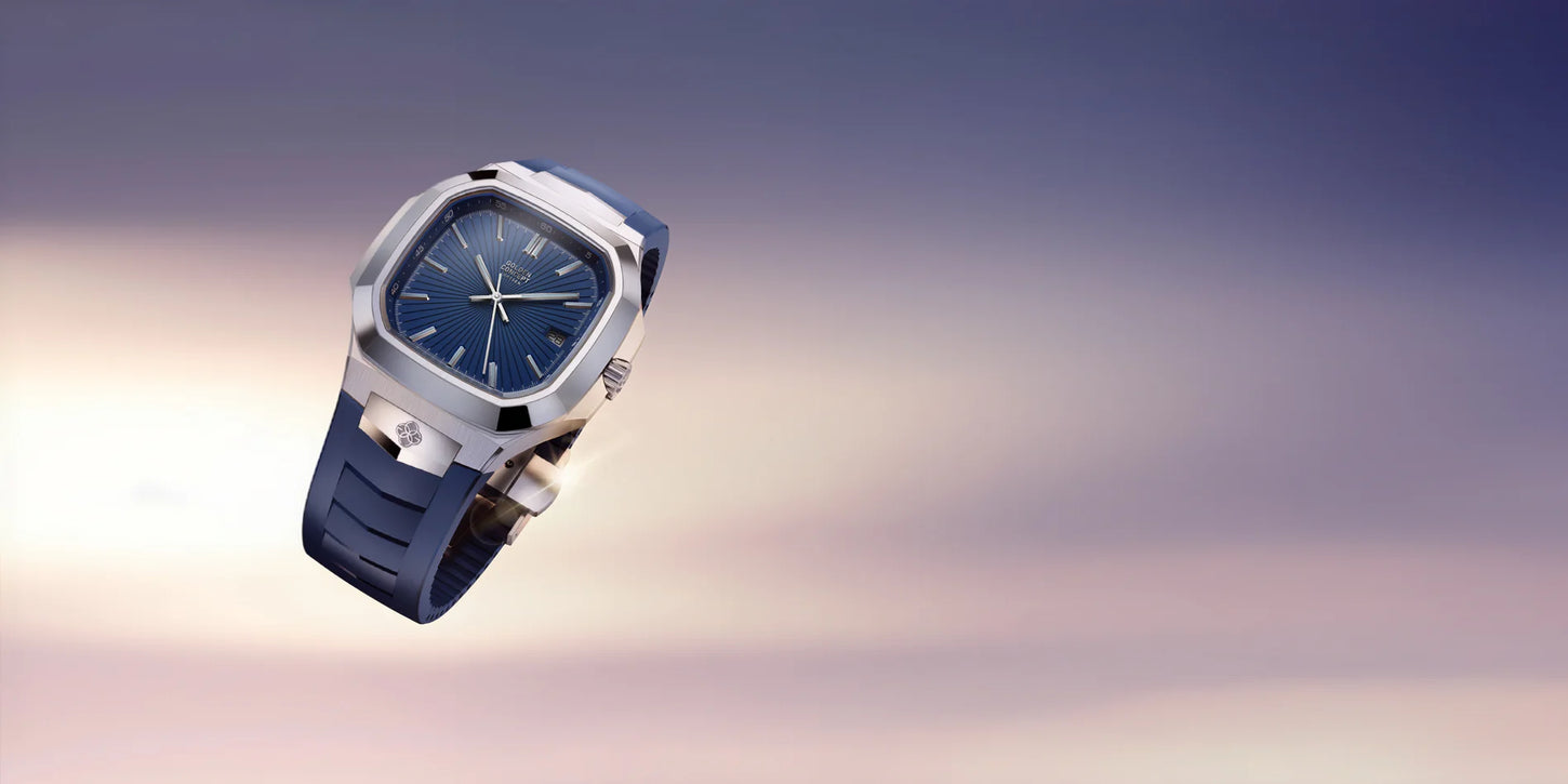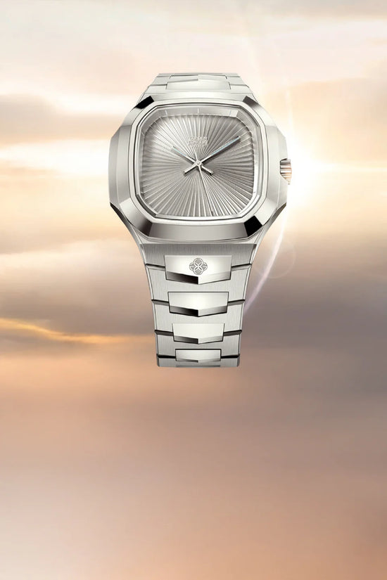 そして Royal Collection は、そのビジョンをさらに洗練させた進化形です。スイスメイドの自動巻きムーブメントを搭載し、独立した本格機械式時計として誕生しました。堅牢なスチールから精密に組み上げられ、彫刻のような立体的フォルムが際立つケースは、一本ごとに固有の個性と気品を宿しています。