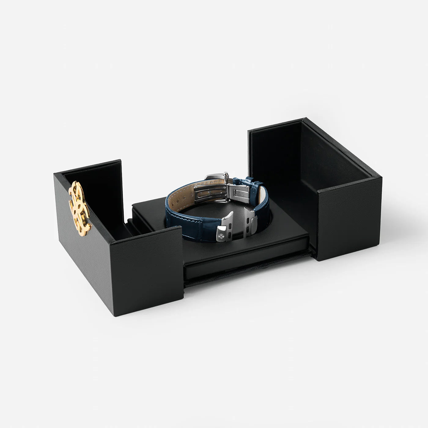 製品は、内装にブラックレザーを用いたハンドメイドのブラックオーク製ボックスに収められます。商品の魅力を最大限に引き出すために、開封構造にも工夫を凝らし、慎重にデザインしました。単なる包装物に留まらず、贅沢で魅力的な“開封体験”をお届けします。