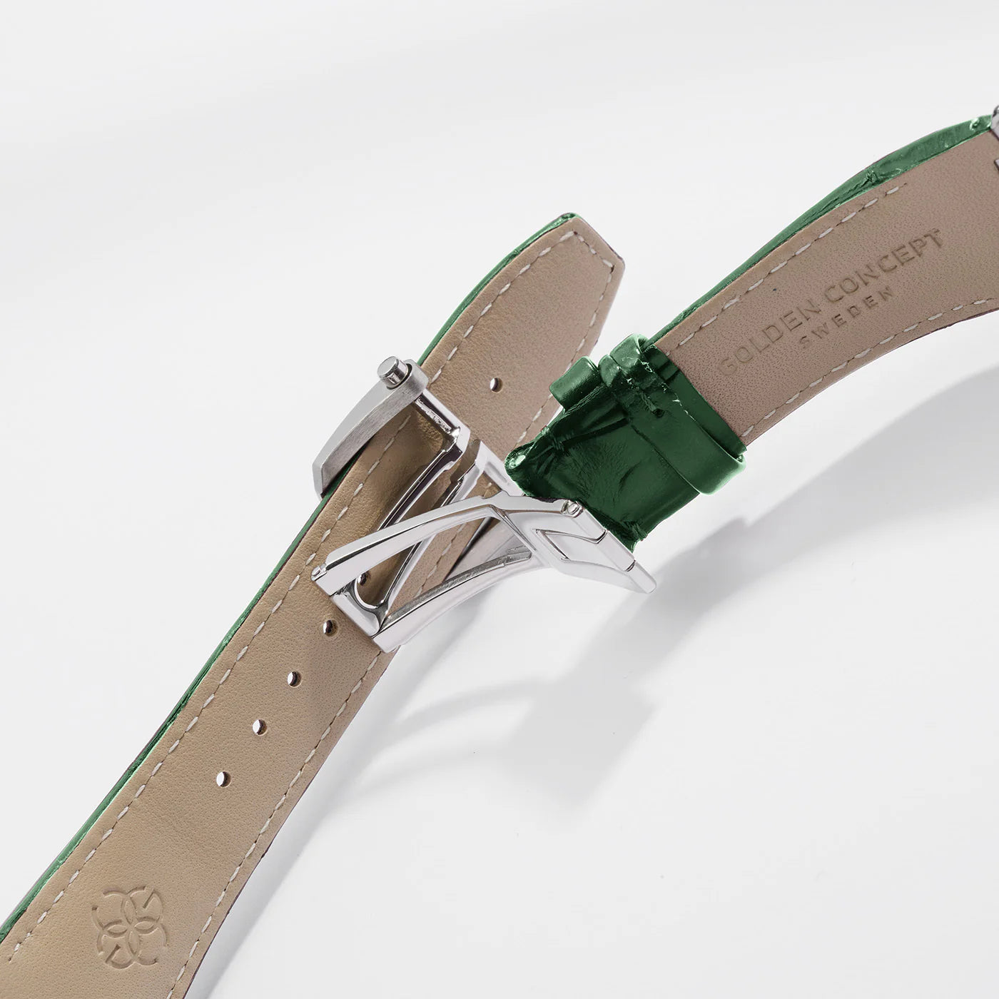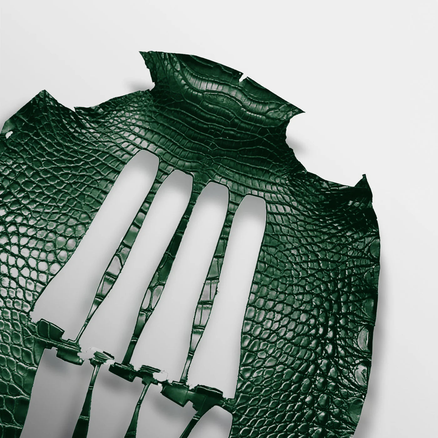 アリゲーターレザーは、独特の美しい鱗模様としなやかな質感が特徴で、使用するほどに豊かな風合い(パティーナ)が生まれ、経年変化を楽しめる素材です。また、高い耐久性を持ちながら軽量であるため、長時間の装着でも快適さを保てます。