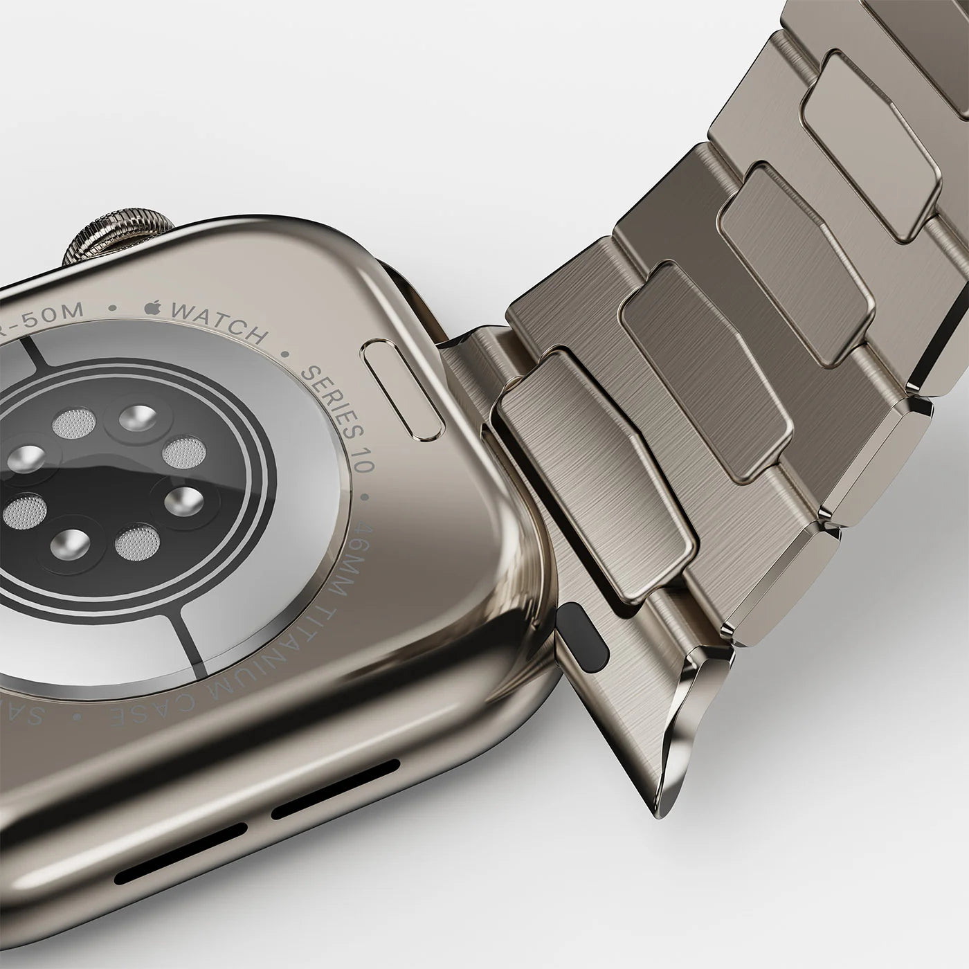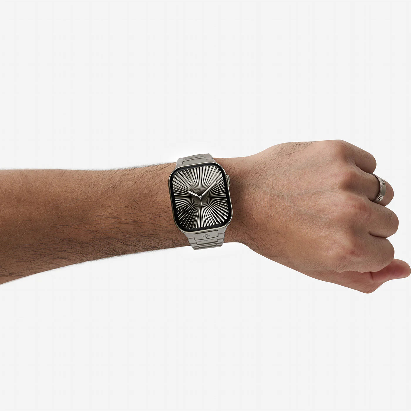 ストラップはアップルウォッチ45mm、49mmどちらのサイズにも完璧にフィットするように設計されており、日常からフォーマルな場面まで幅広いシーンに対応します。洗練されたデザインが、Apple Watchを単なるデバイスから、存在感あふれるステートメントピースへと昇華させます。
