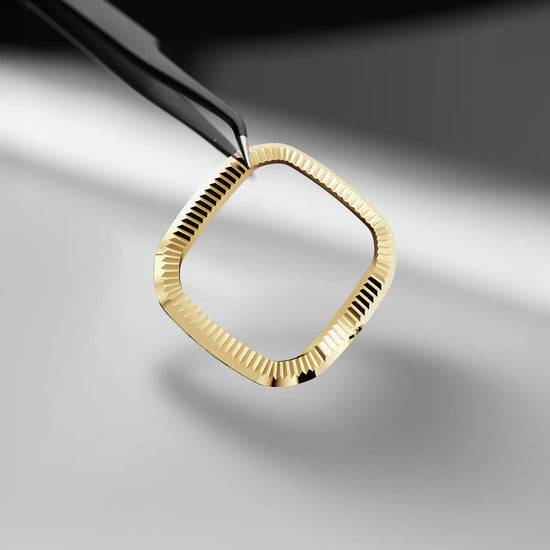 316Lステンレススチール製の高品質ベゼルを採用。リブデザインが光を美しく反射し、見る角度によって異なる表情を楽しめます。繊細で洗練された仕上がりが、ケース全体に上質な質感と芸術的な魅力を与えています。
