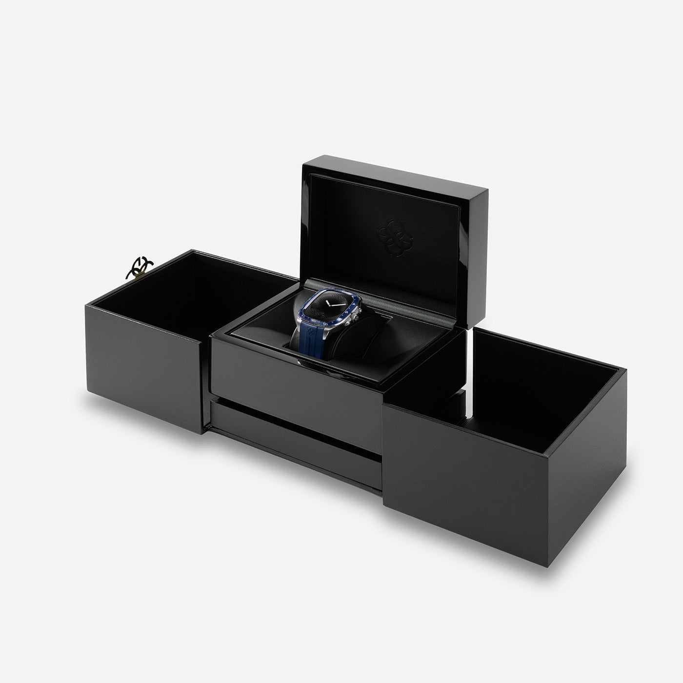 ゴールデンコンセプトのボックスは、商品の魅力を最大限に引き出すために、開封構造にも工夫を凝らし、慎重にデザインしました。単なる包装物に留まらず、贅沢で魅力的な"開封体験"を提供いたします。