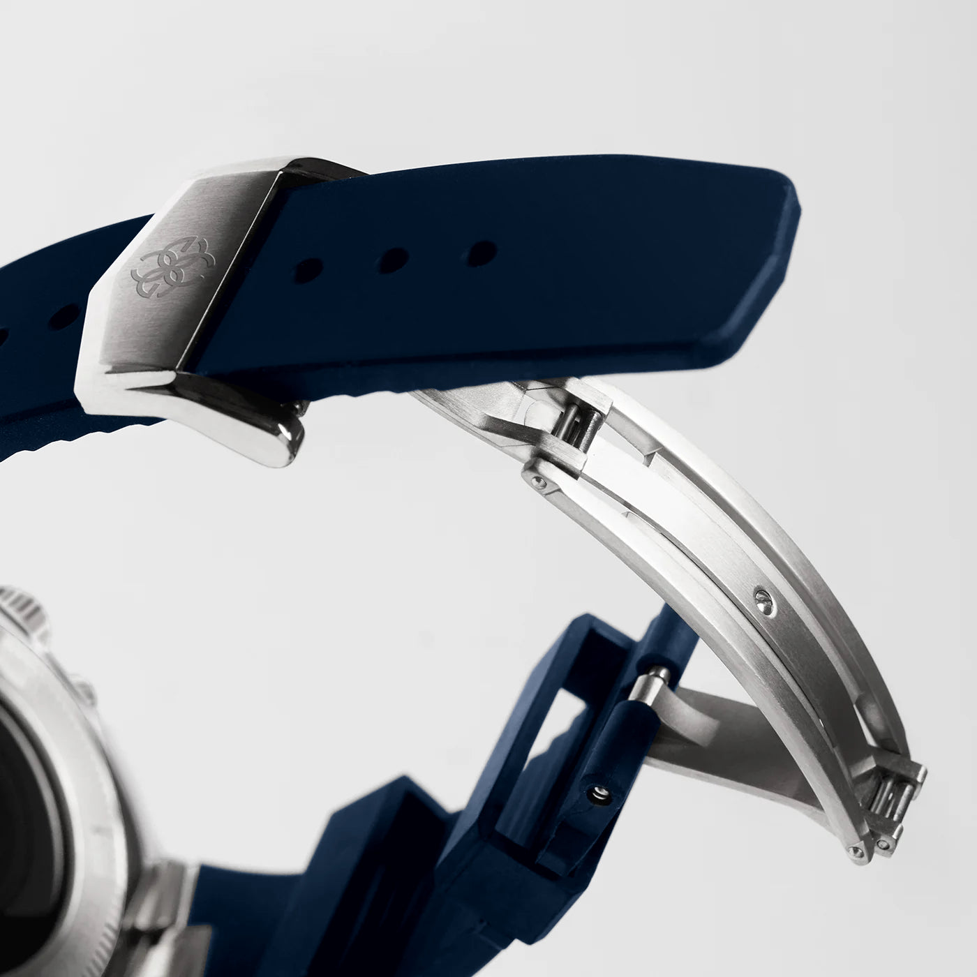 クラウン・クラシック・スポーツが、新たな装いで再登場。タイムレスなデザインに、新しい表情を加えました。ブルーのフルオロエラストマーストラップを採用し、オリジナルの上品なスタイルを受け継ぎながらも、よりスポーティな印象へと進化。快適で耐久性に優れ、スタイリッシュな佇まいは、日常からアクティブなシーンまで幅広く活躍します。