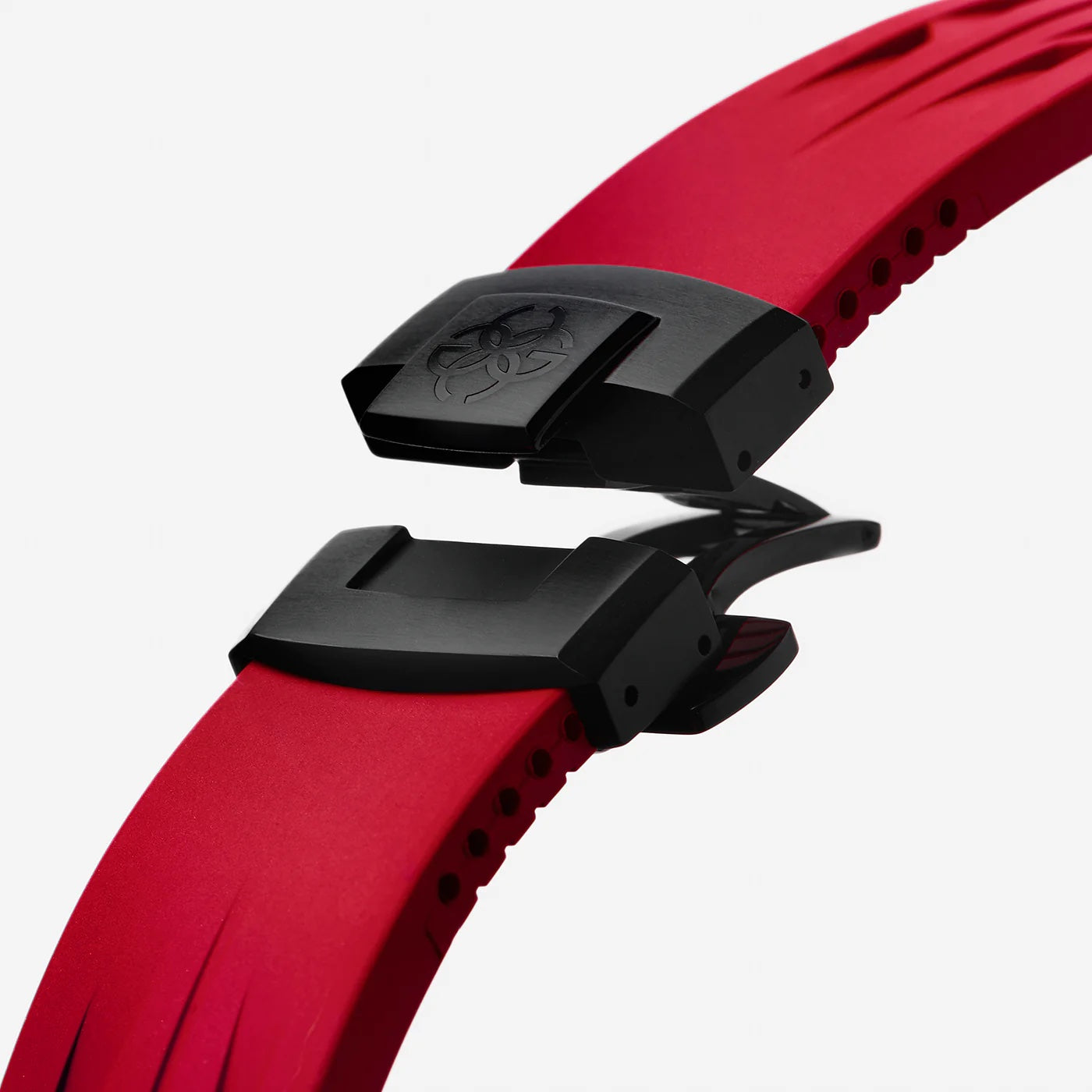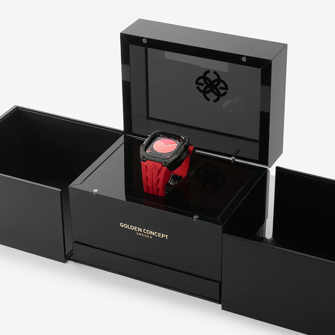 「DIABLO」その名に相応しいブラック×レッドの攻めの効いたデザインと、ブラックモアサナイトが放つシックな輝きが独自のスタイルと個性を表現しています。
