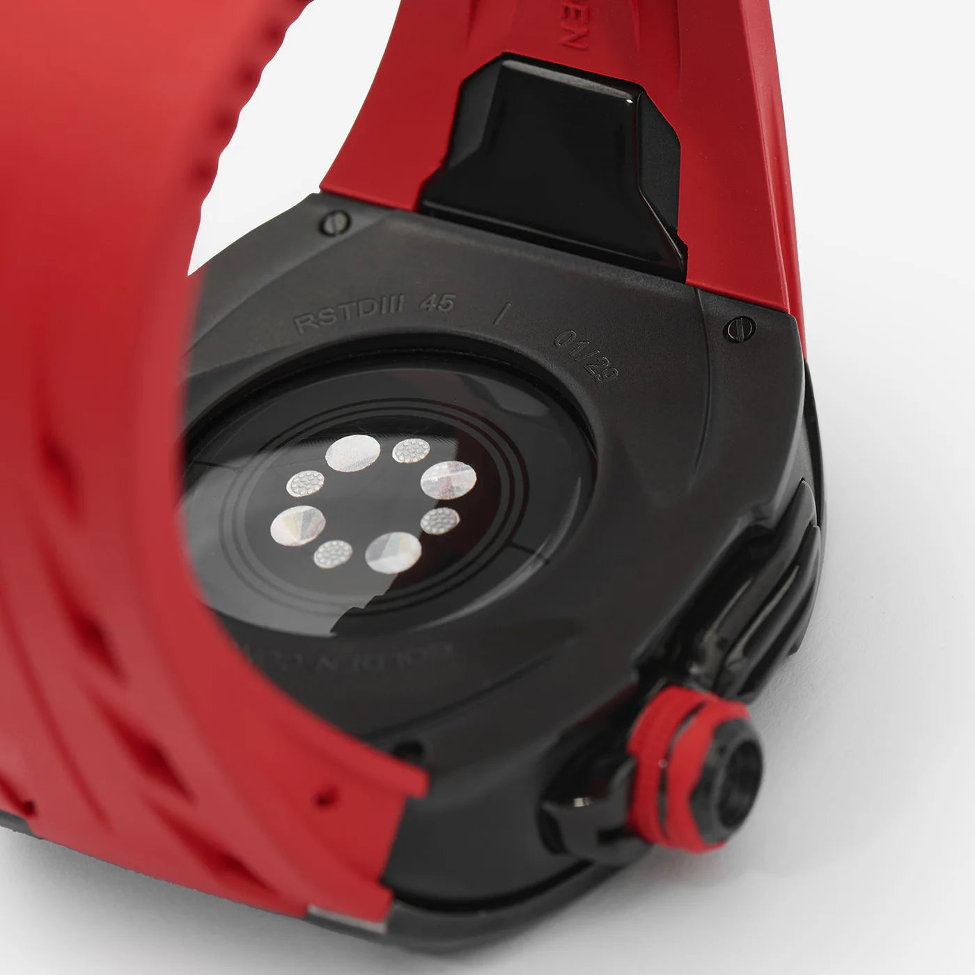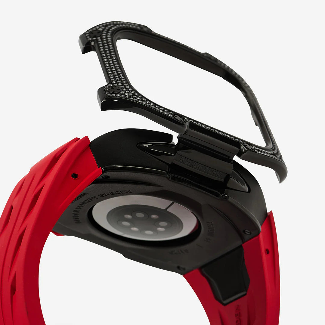 新しくなったRACING SPORT EDITIONは、特許取得済みの機構「ハッチベゼル」により、ワンタッチでアップルウオッチの入れ替えが可能に。簡単にケースを付け替えることができるので、ビジネスやレジャーなど、さまざまなシーンに合わせて"変化を楽しむ”ことができます。また、ケースやアップルウォッチ本体をクリーニングしたい際に役立ちます。
