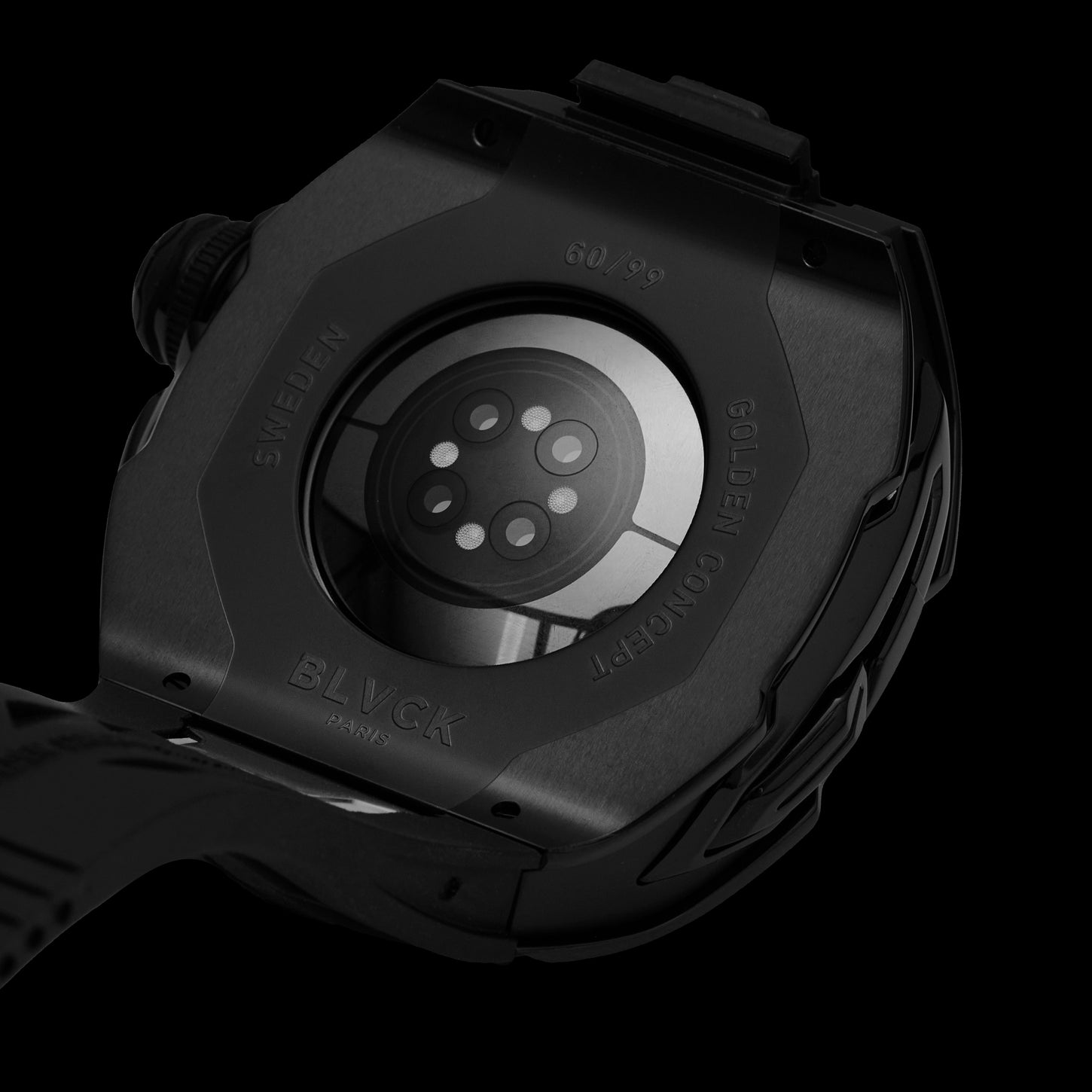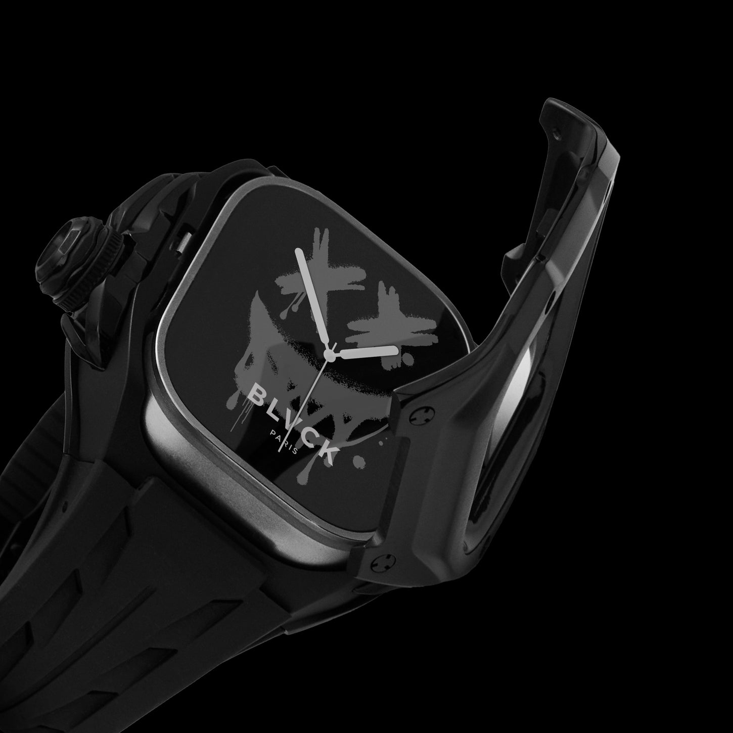 アップルウォッチケースの主となるベゼルから細部のビスに至るまで、全てのパーツをブラックで統一することでBLVCK PARISの一貫したオールブラックの美学を表現。また、金属やラバーなどの質感の違いにより、ブラックの風合いが変わるのも魅力です。