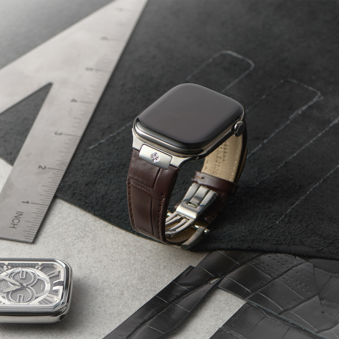 アリゲーターレザー Apple Watch ストラップは、時を超えたラグジュアリーと現代的なスタイルが融合した逸品です。ミシシッピの名高い湿地帯から採取された本物のアリゲーター革を使用し、エレガンスと耐久性を兼ね備えたストラップに仕上げました。