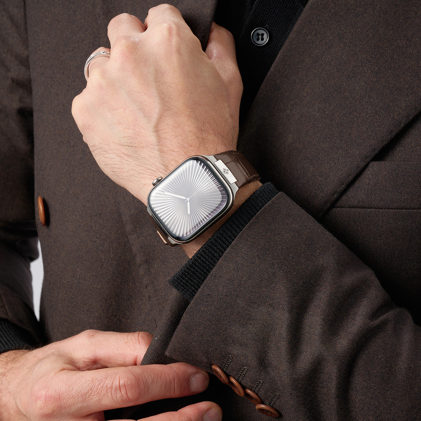 本物のアリゲーター革を贅沢に使用した『ALG Leather』で、Apple Watchを一層格上げ。美しい鱗模様が織り成す独特の風合いと、卓越した耐久性が手元に洗練された高級感をもたらし、使い込むほどに深みを増す魅力をお楽しみいただけます。