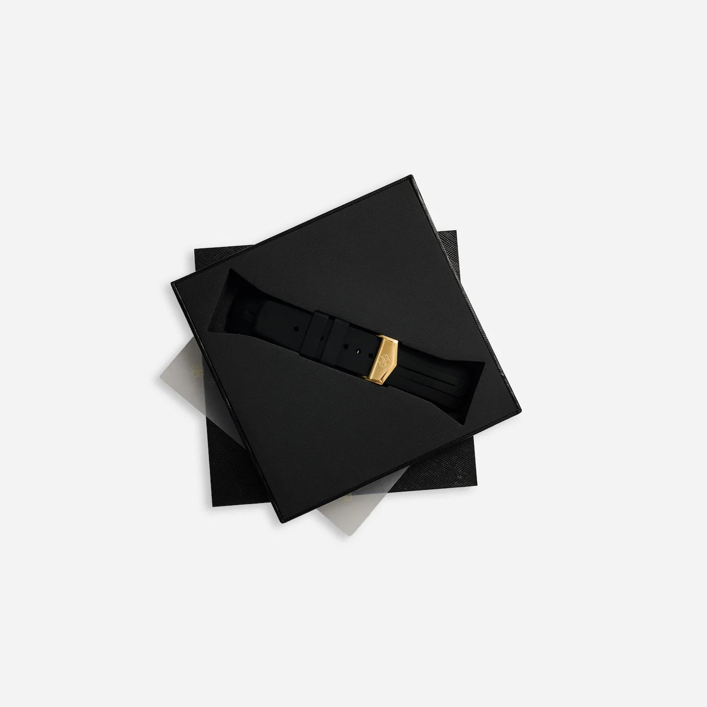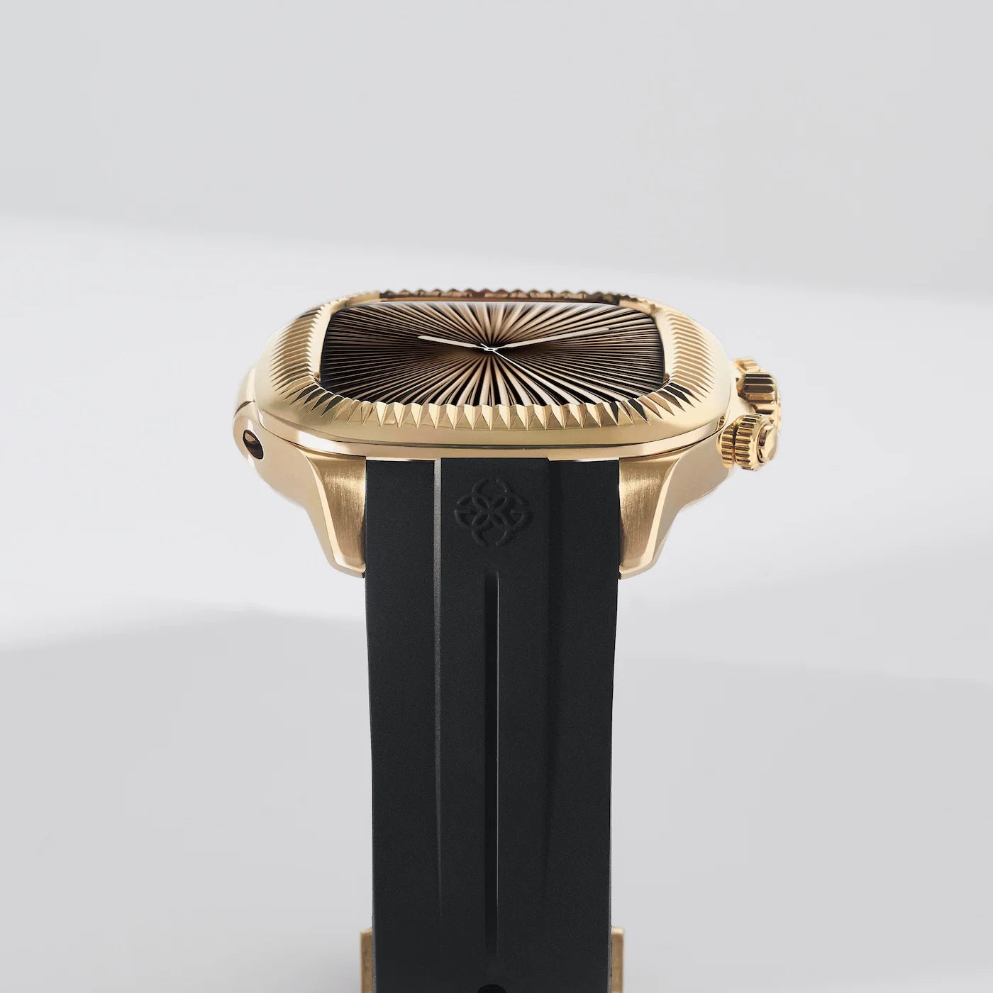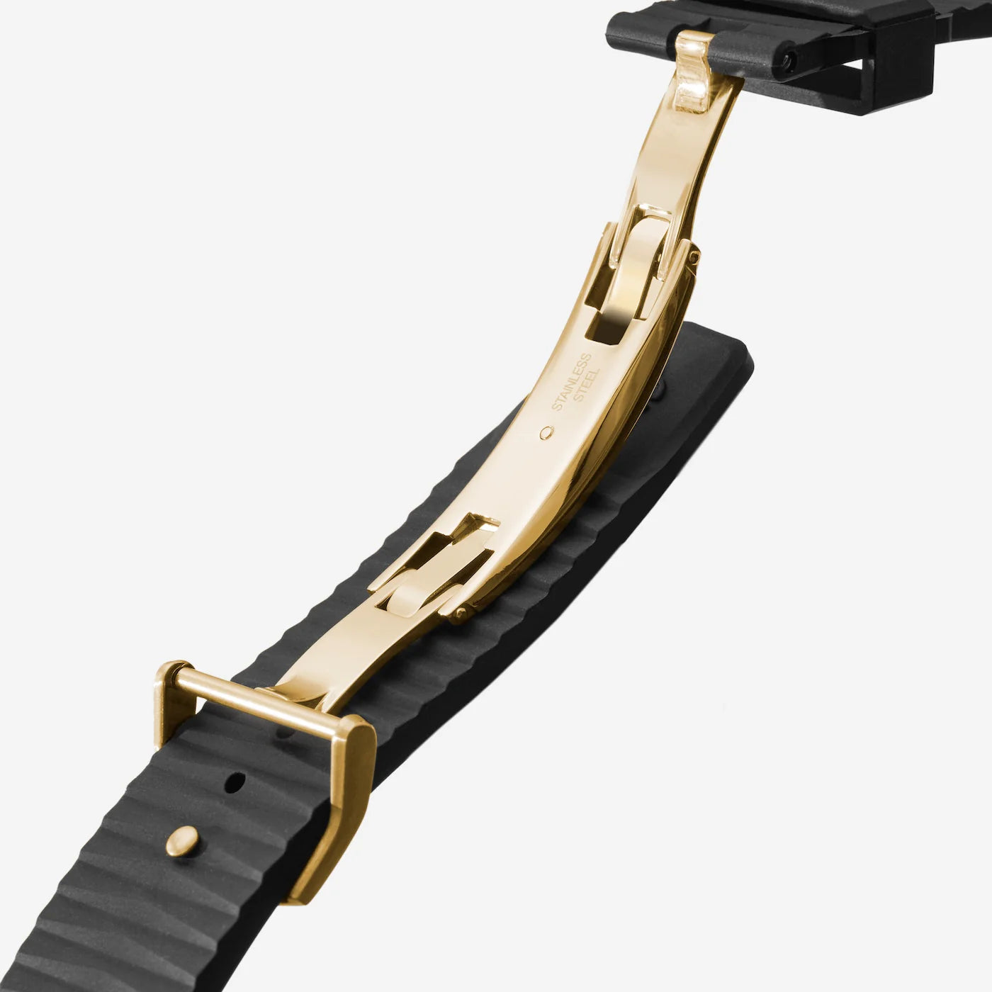 しなやかさと強さを兼ね備えたフルオロエラストマー製のストラップは、手首に自然に馴染み、熱や湿気、日常の使用にも耐えながら快適さを持続します。バタフライバックルが安定したフィット感を生み出し、立体的にデザインされたGCエンブレムが上品なアクセントに。仕上げはポリッシュシルバーのほか、PVD加工を施した18Kゴールドやローズゴールドをご用意し、クラウンエディションケースに美しく調和します。