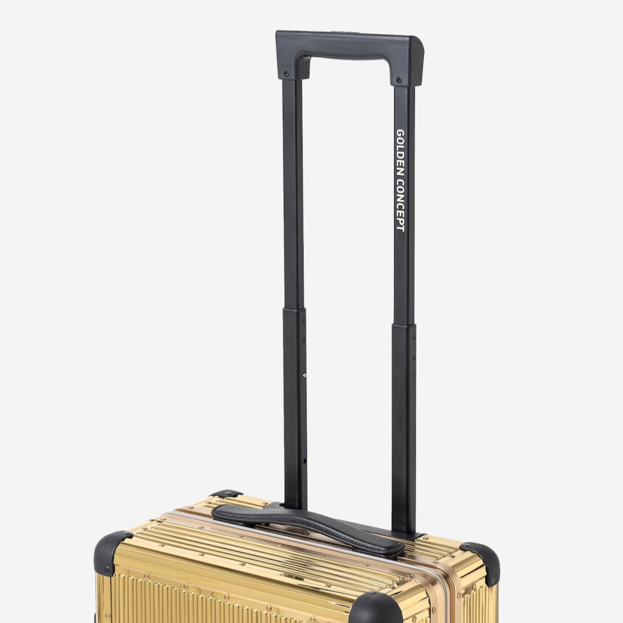 ソリッドゴールドの鮮やかで力強い輝きを際立たせたカラーリング。何度もサンプルを重ね、光の反射や質感、トーンまで徹底的に追求しました。ハンドルには上質なブラックレザーを、角部分には衝撃を和らげる黒いラバーパーツを配し、黒と金の洗練されたコントラストを演出しています。