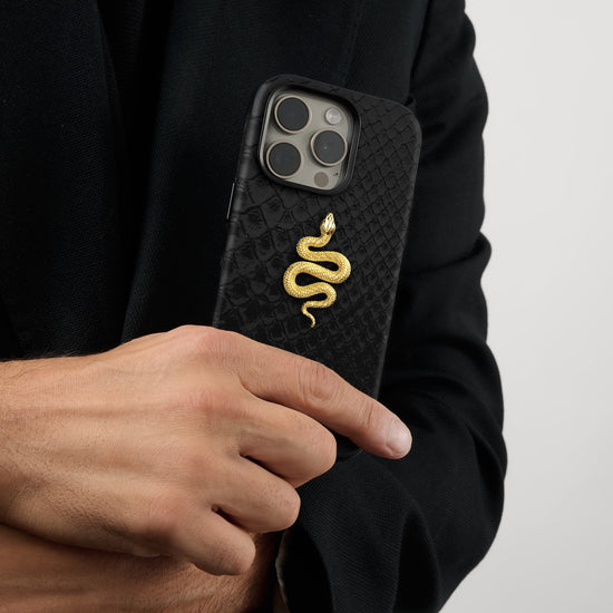 本物のパイソンレザーを使用し、18金メッキで施された印象的な蛇の装飾が特徴のこの「Python Edition iPhone Case」は、変革、ラグジュアリー、そして精緻さを象徴し、この特別な年を祝うためにデザインされています。