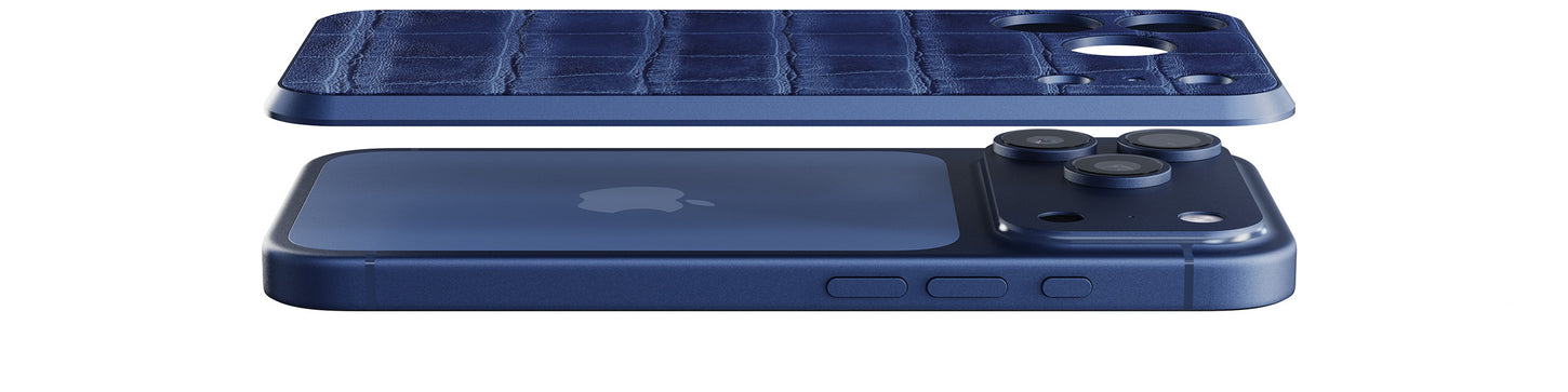 カラーは、Appleの最新iPhone Pro「ディープブルー」に合わせて丁寧に調整され、ケースとデバイスの間に美しい一体感を生み出しています。繊細なクロコダイルパターンを施したレザーは、奥行きのある表情と個性を添えながら、iPhone本来のスリムなフォルムをそのままに保ちます。