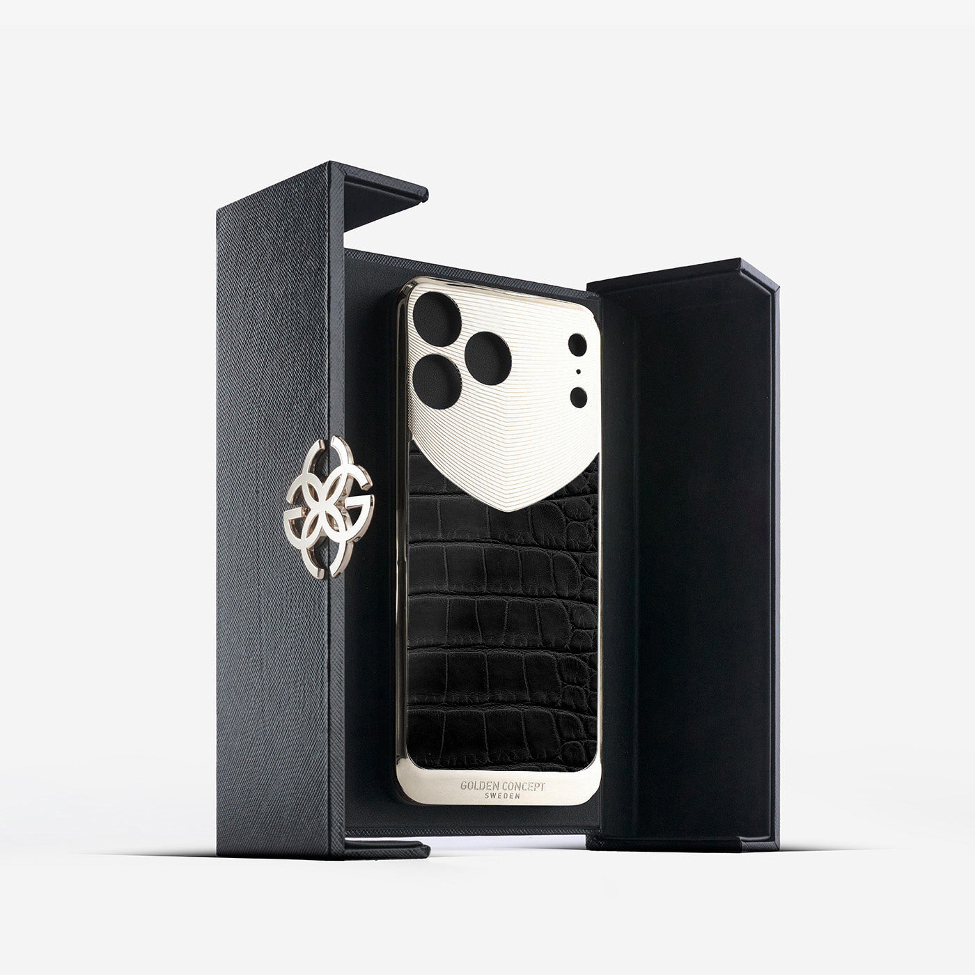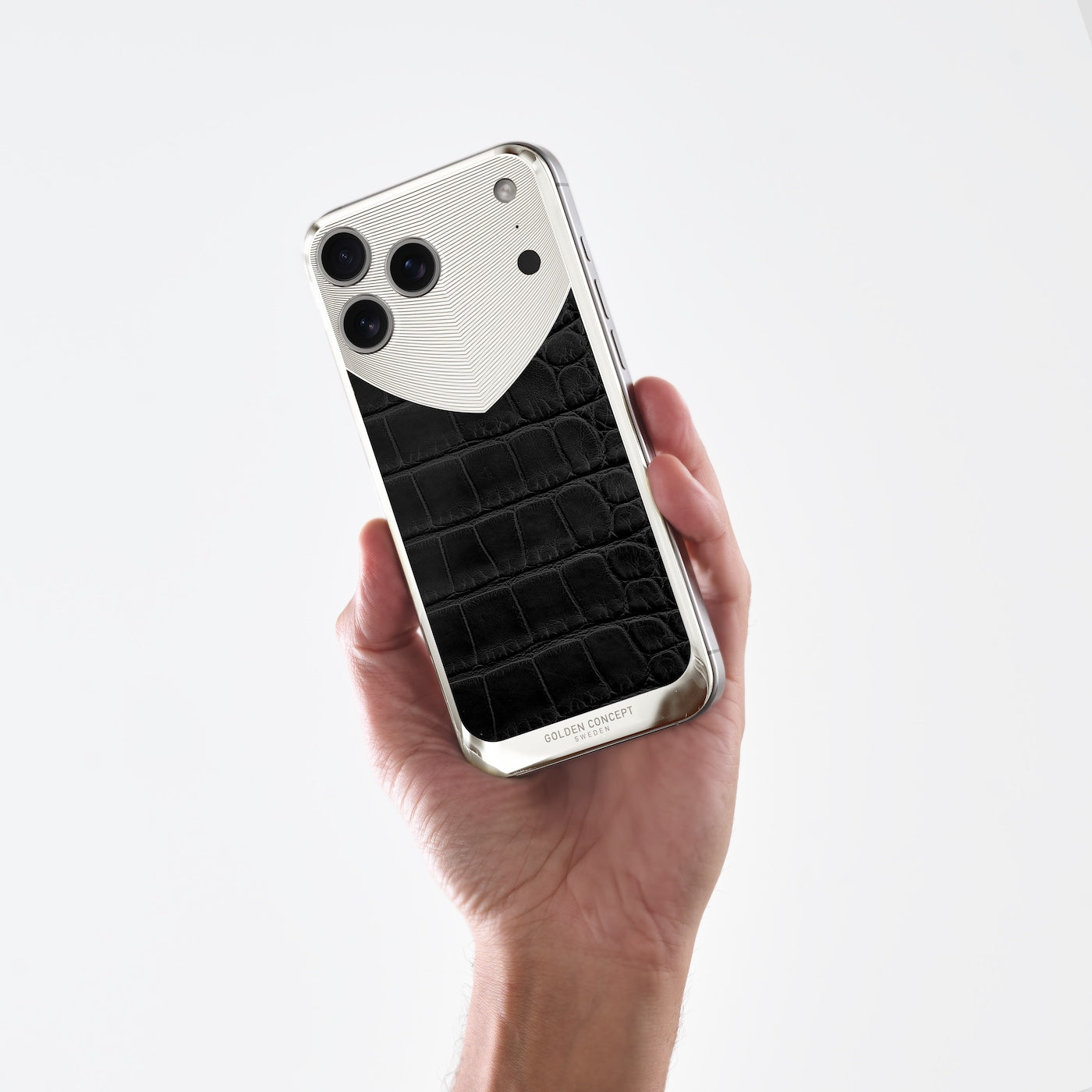 かつてない存在感を放つ、最高峰のマグネティック・シールド艶やかのなブラックのアリゲーターレザーを、高光沢のステンレススチール製バックプレートに美しく組み合わせた本作。異なる質感が織りなすコントラストが、圧倒的な存在感を生み出し、iPhoneを単なるスマートフォンから、真のラグジュアリーアイテムへと昇華させます。