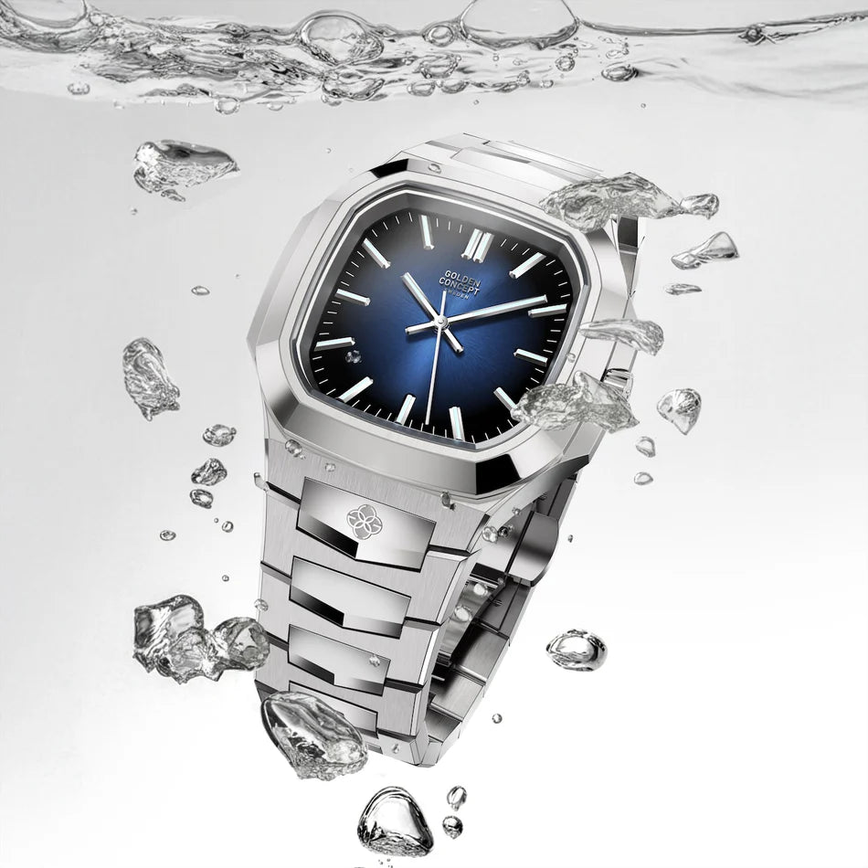 通常のリューズ構造を採用しながらも、密閉性を高めたケース設計により、100m 防水を実現。日常使いはもちろん、よりハードな環境でも信頼性を保ちます。フラットサファイアクリスタルには反射防止コーティングを施し、光が変化する環境でも視認性を確保しながら、優れた耐久性を備えています。