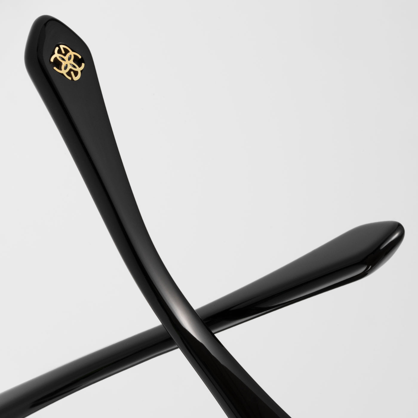 マツケリ社製アセテートフレーム(ブラック)、ゴールドメタルのディテール