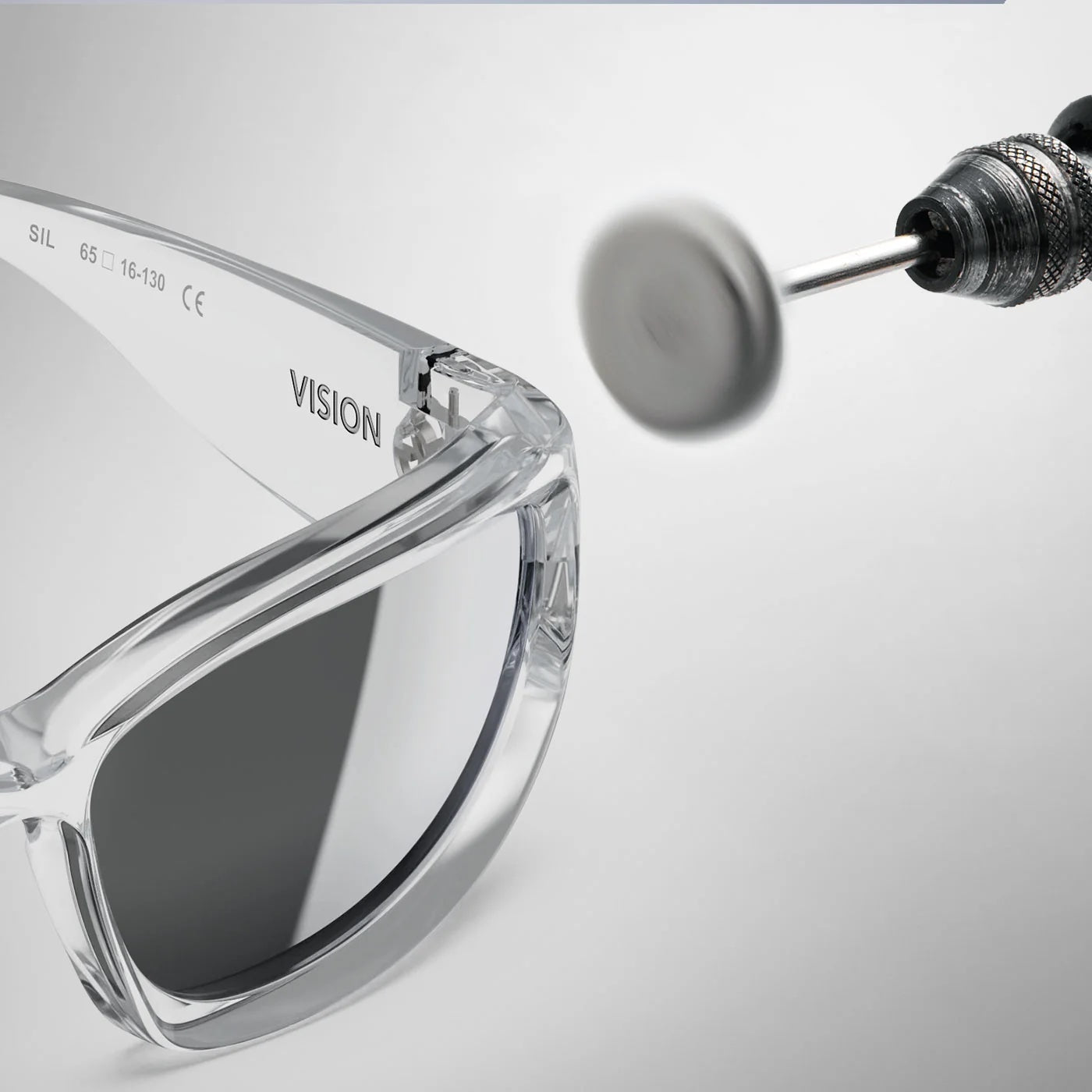 「VISION(ビジョン)」は、細いキャットアイの形状を採用し、洗練されたクリアフレームとミラードシルバーレンズが全体のデザインを引き立て、ユニークな存在感を醸し出します。ユニセックススタイルにより、どんな服装にもマッチし、幅広いシーンでお楽しみいただけます。